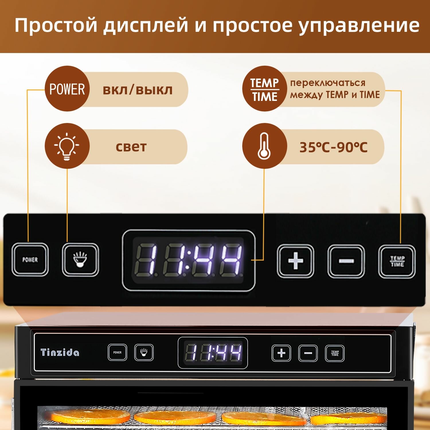 Сушилка для овощей, фруктов и мяса TINZIDA TZD-10C, 10 поддонов, 5 лотки для пастилы, 800 Вт, дегидратор