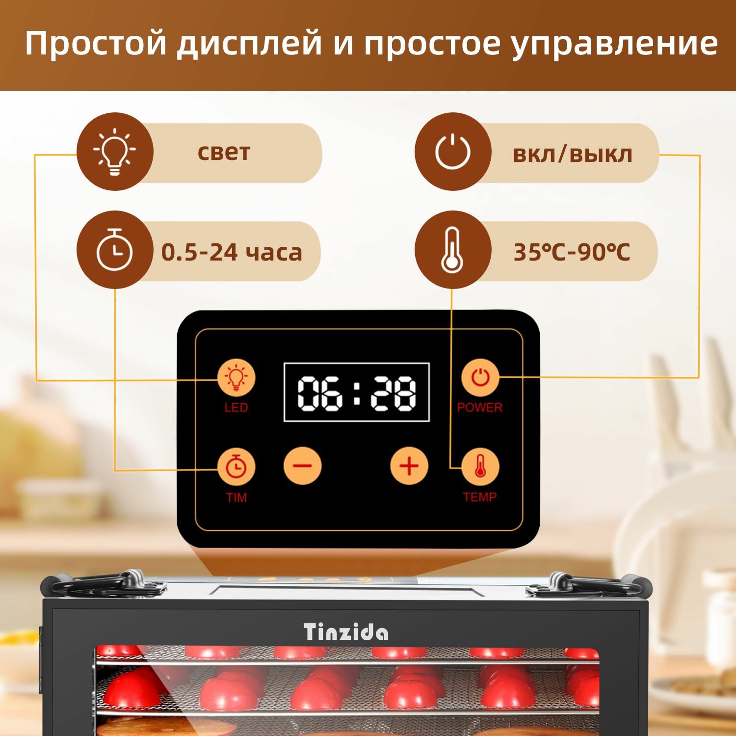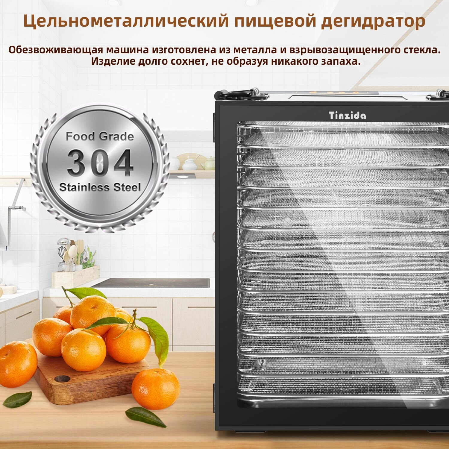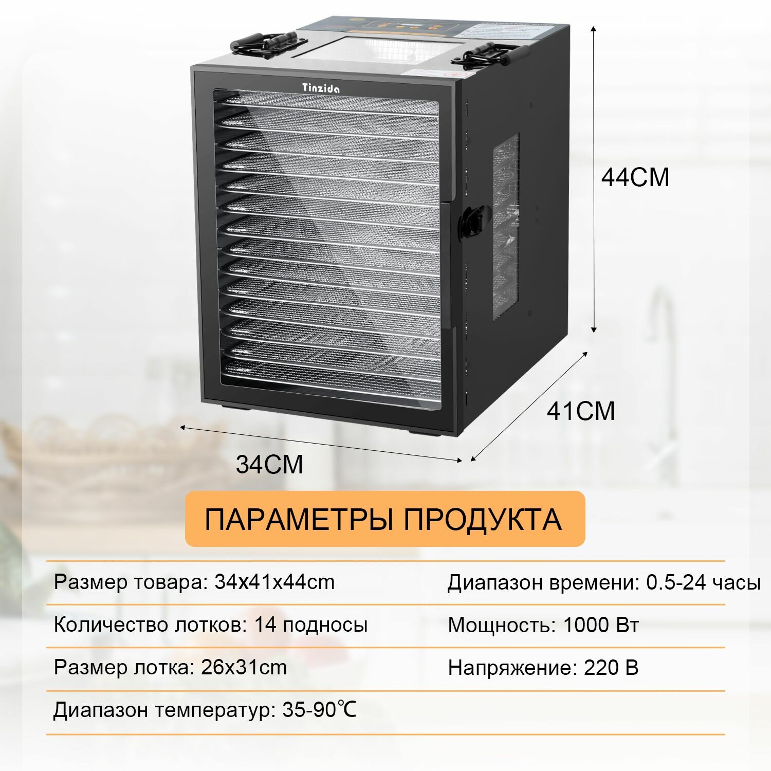Сушилка для овощей, фруктов и мяса Tinzida Дегидратор TZD-14DG 14 поддонов, 5 лотки для пастилы, 1000 Вт интересное: