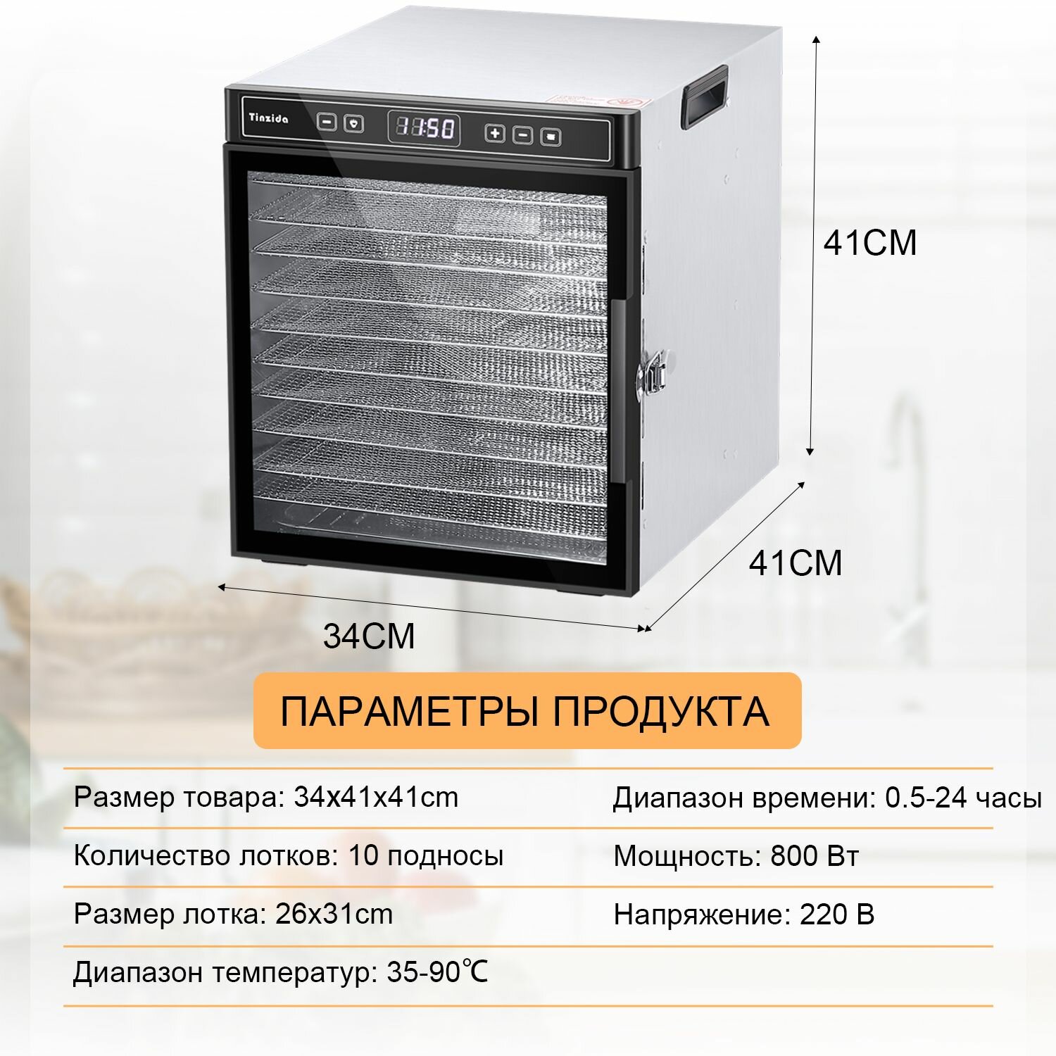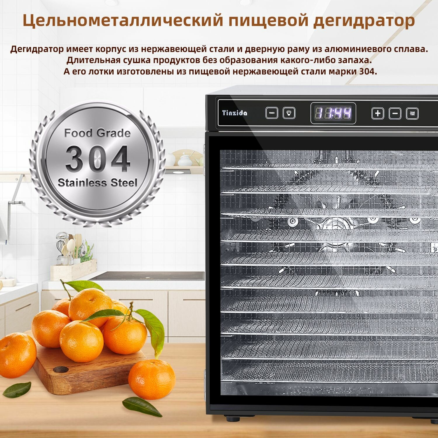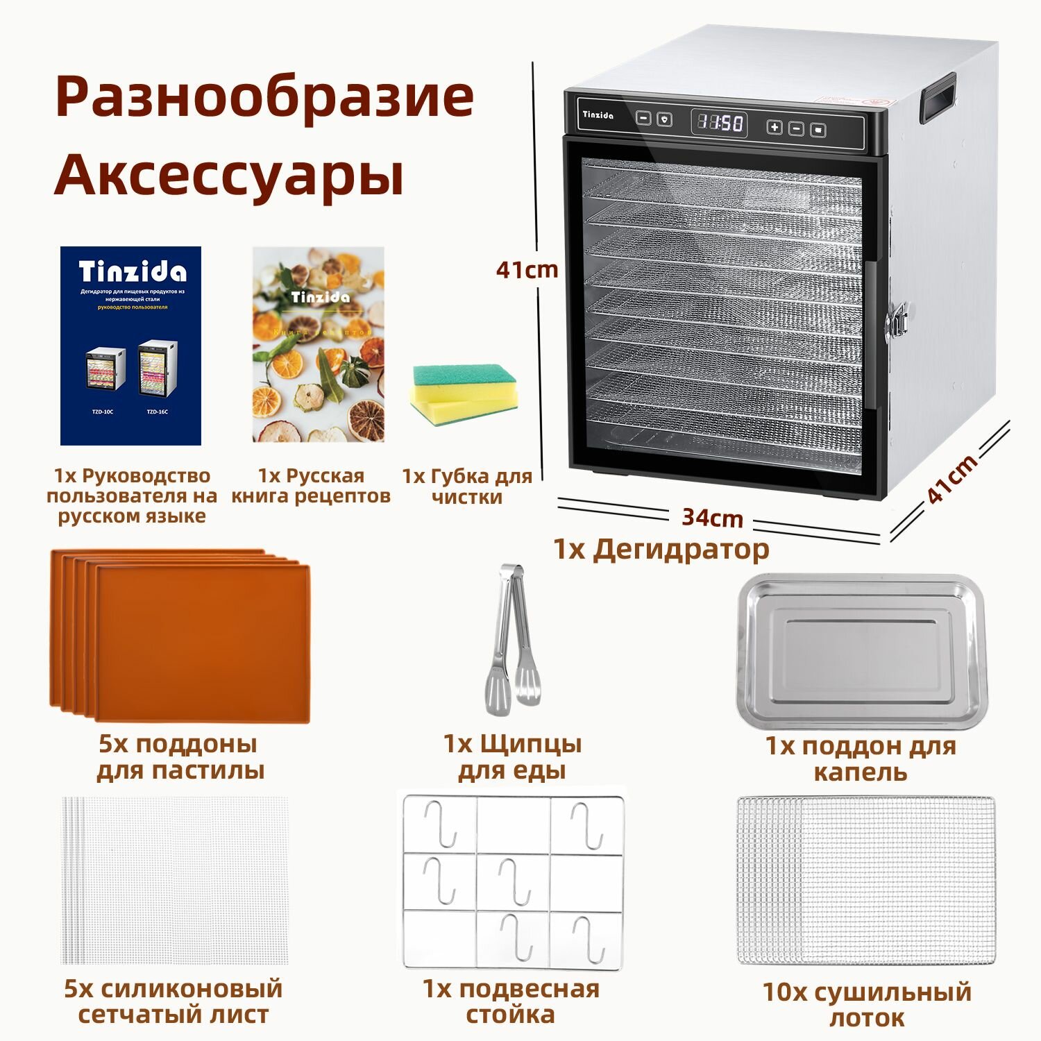 Сушилка для овощей, фруктов и мяса TINZIDA TZD-10C, 10 поддонов, 5 лотки для пастилы, 800 Вт, дегидратор интересное: