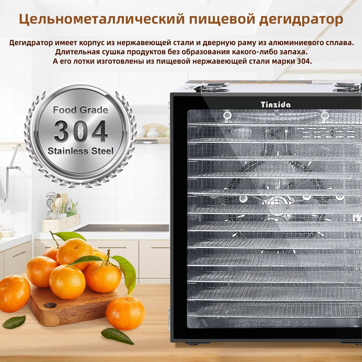 Сушилка для овощей, фруктов и мяса Tinzida Дегидратор 12 поддонов интересное: