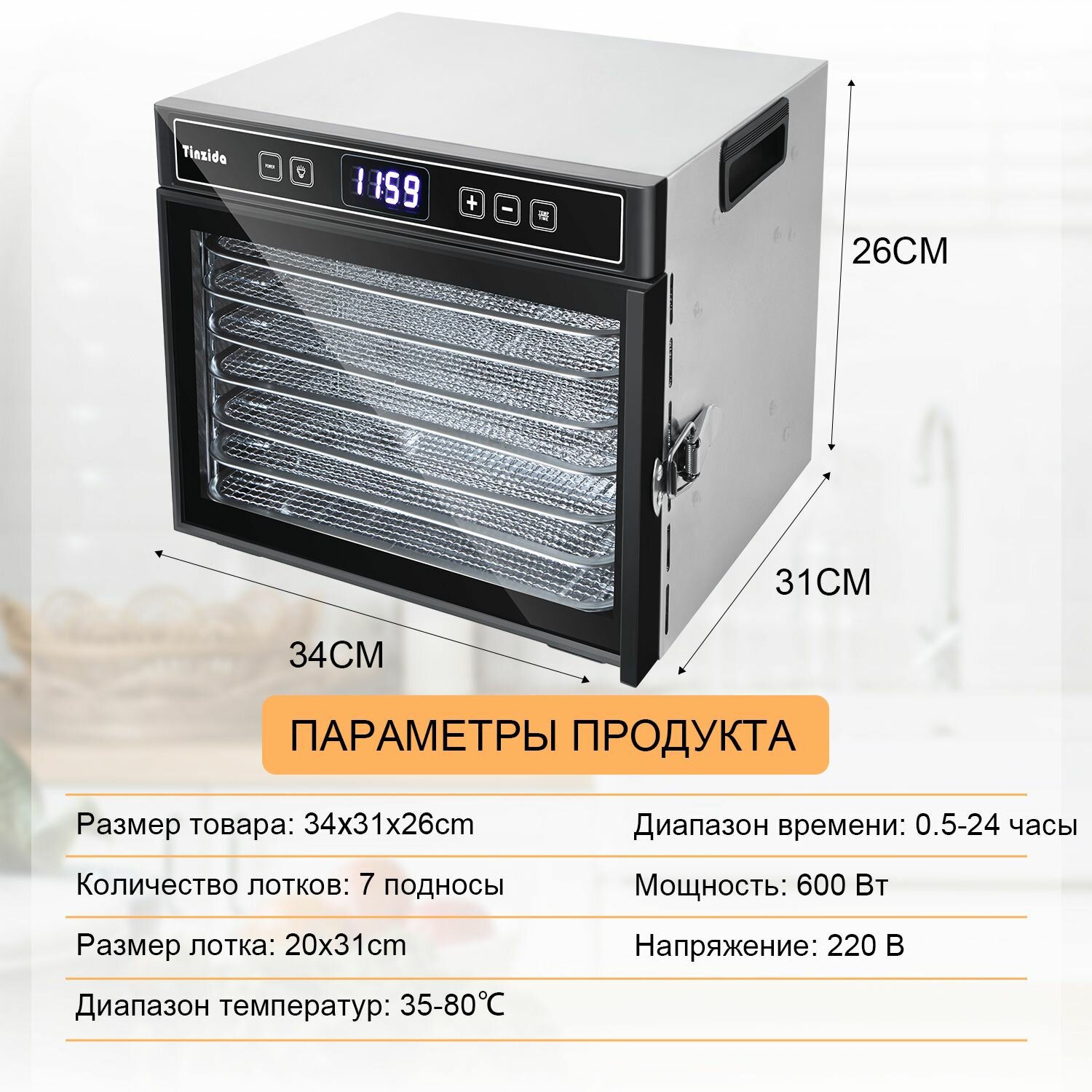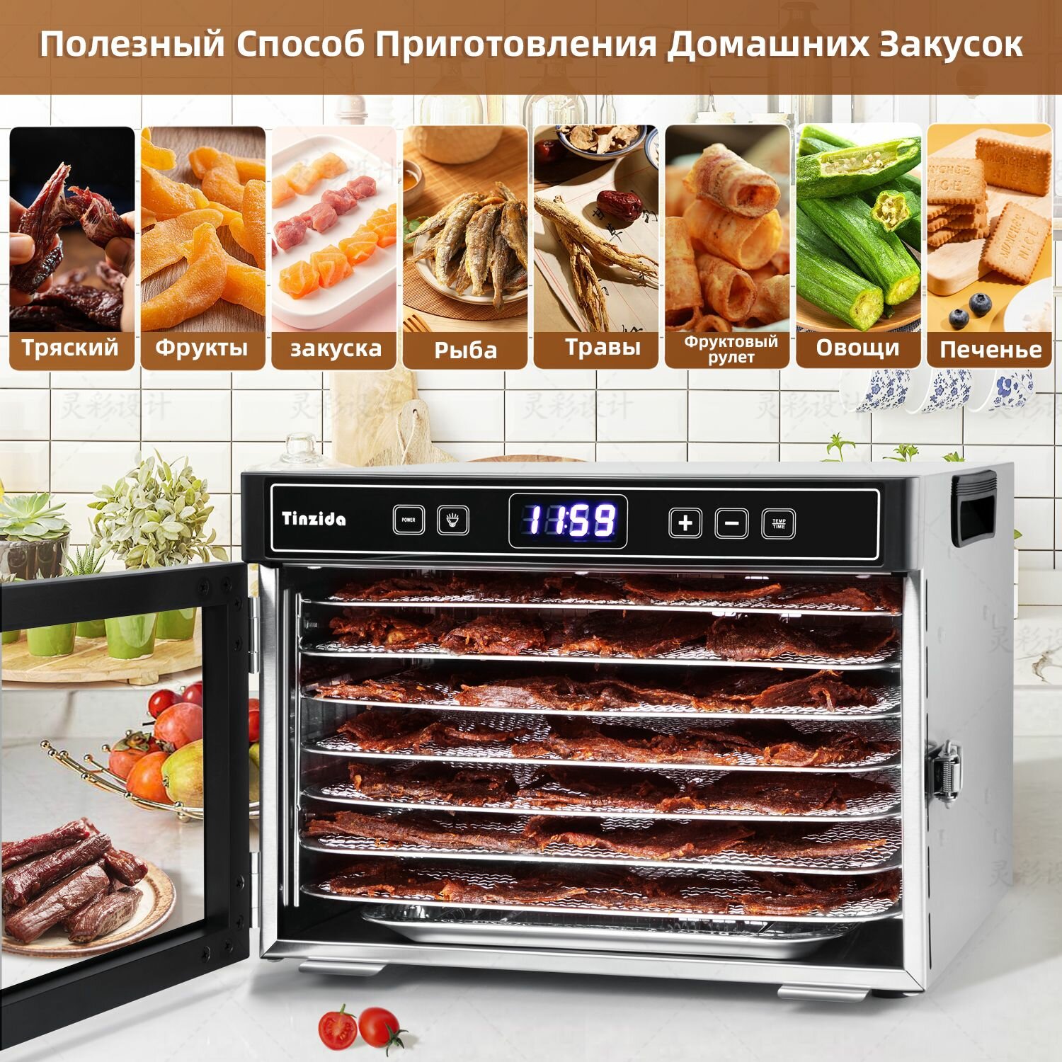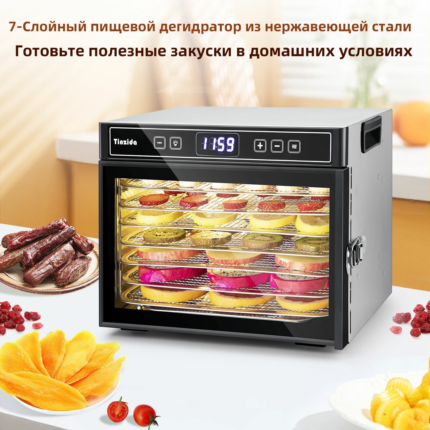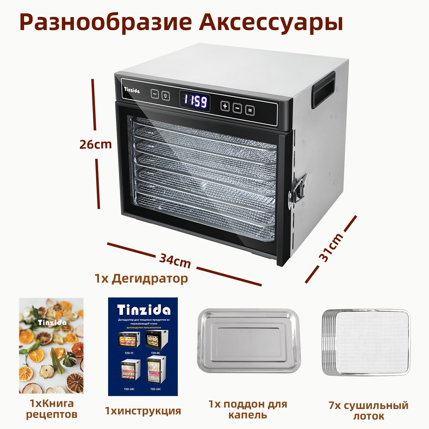 Сушилка для овощей, фруктов TINZIDA TZD-7C Дегидратор 7 лотков интересное: