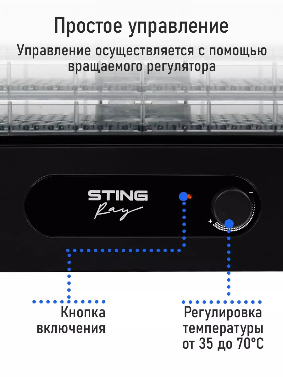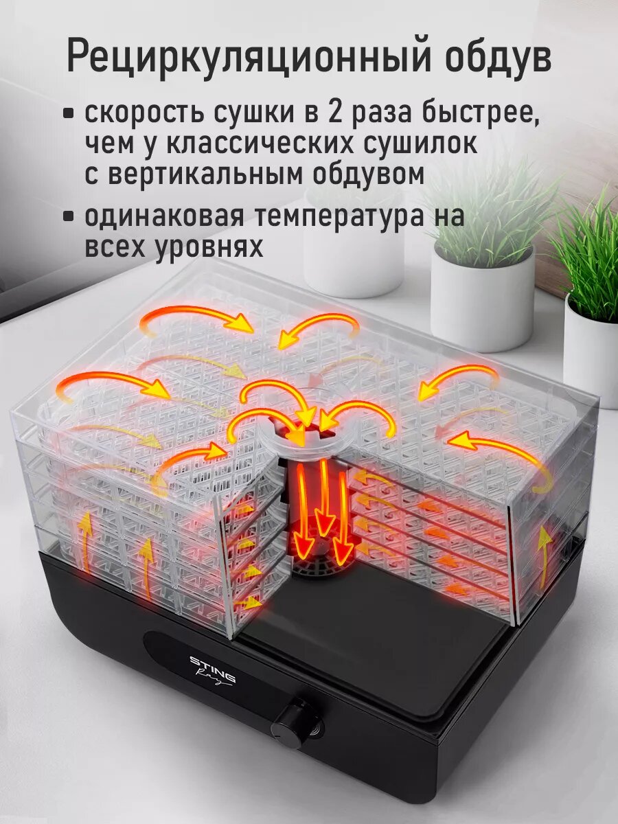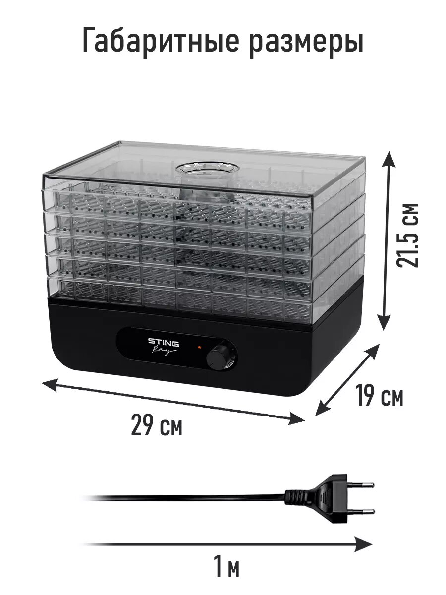 Дегидратор сушилка для овощей электросушилка STINGRAY ST-FD715D 5 поддонов черный интересное:
