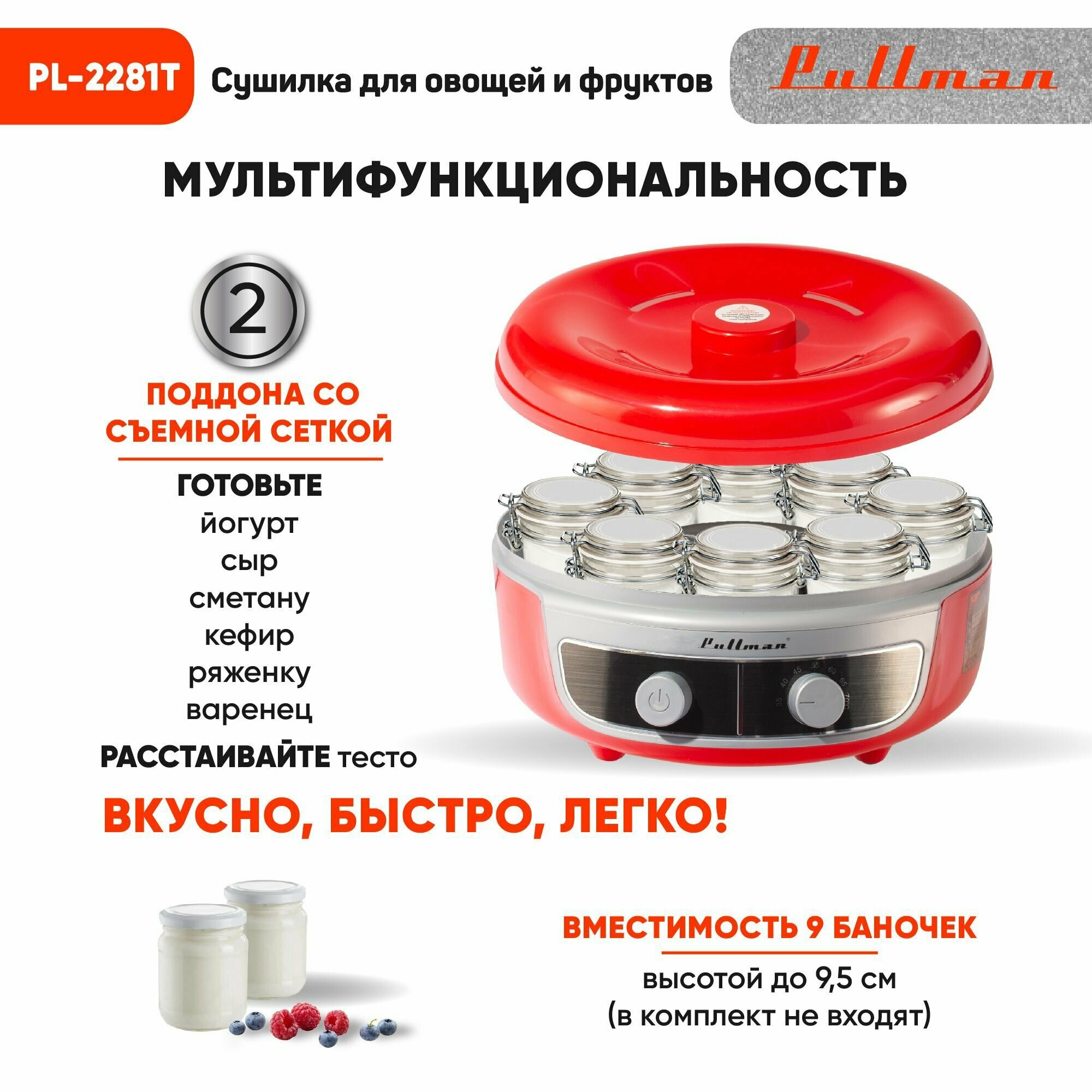 Сушилка для овощей и фруктов Pullman PL-2281 Т, дегидратор/электрическая 8 поддонов и 4 поддона для пастилы+таймер в подарок интересное: