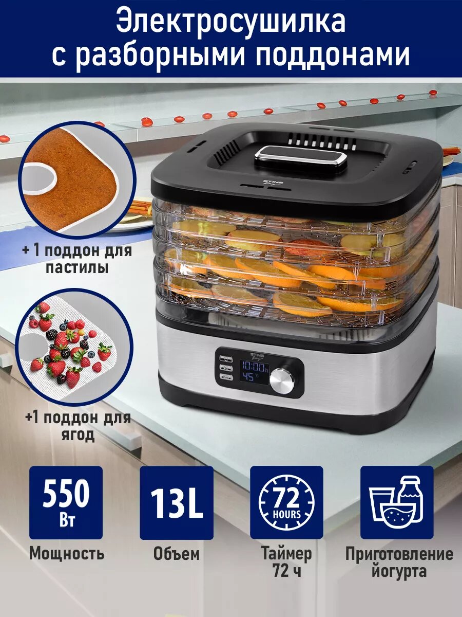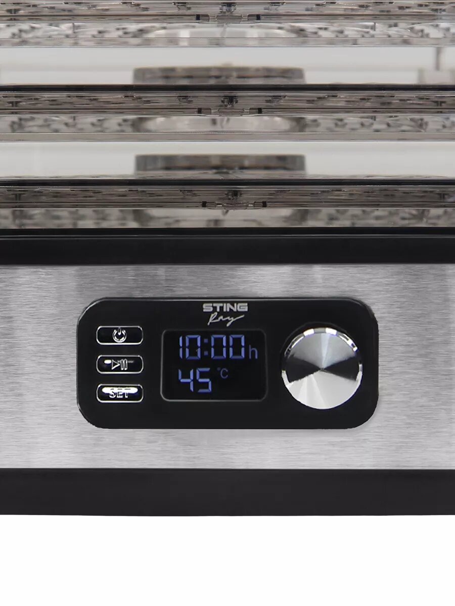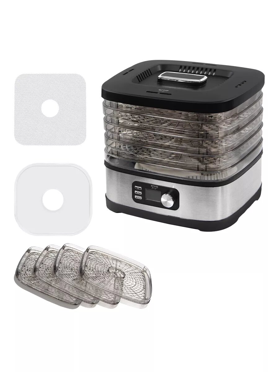 Дегидратор сушилка для овощей электросушилка STINGRAY ST-FD728A 6 поддонов (4 основных + 1 для пастилы + 1 для ягод) черный/черный интересное: