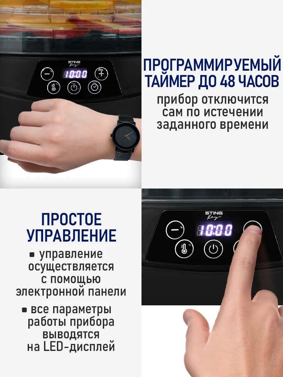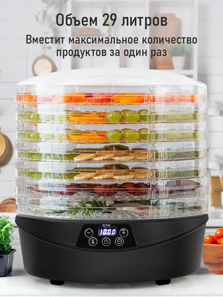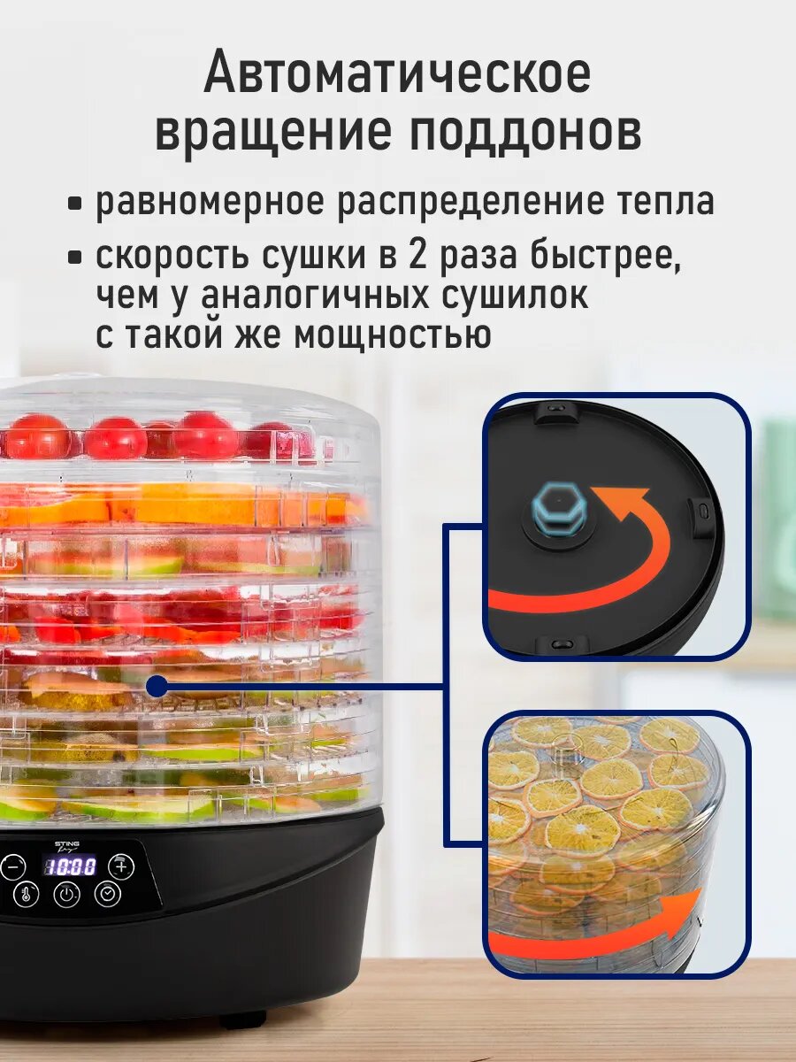 Дегидратор сушилка для овощей электросушилка STINGRAY ST-FD714A с автоматическим вращением поддонов 7 поддонов черный интересное: