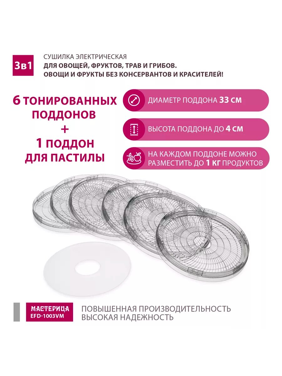 Ниже Вы можете прочитать отзывы на Сушилка фруктов, дегидратор, йогуртница Мастерица EFD-1003VM, ознакомится с подробными характеристиками, посмотреть интересные обзоры и фотографии на Сушилка фруктов, дегидратор, йогуртница Мастерица EFD-1003VM.