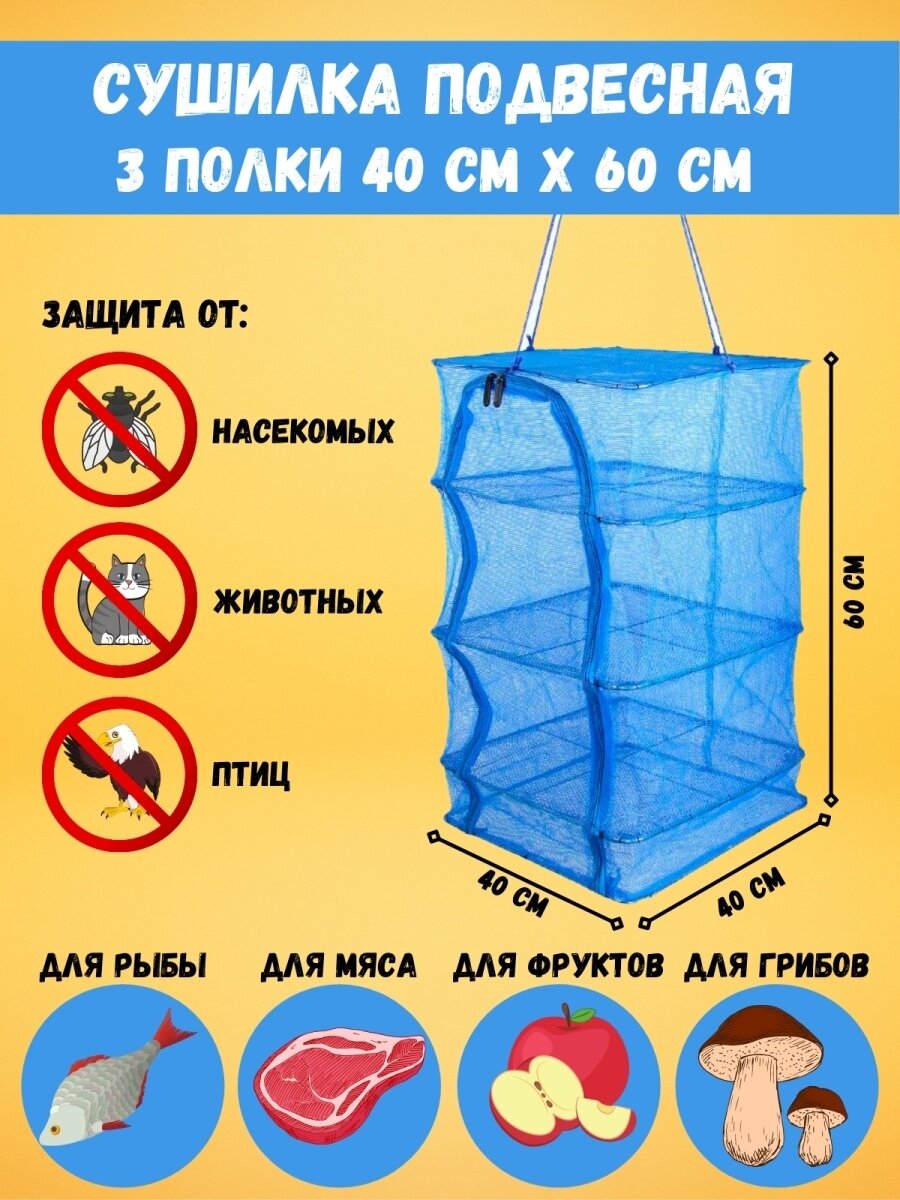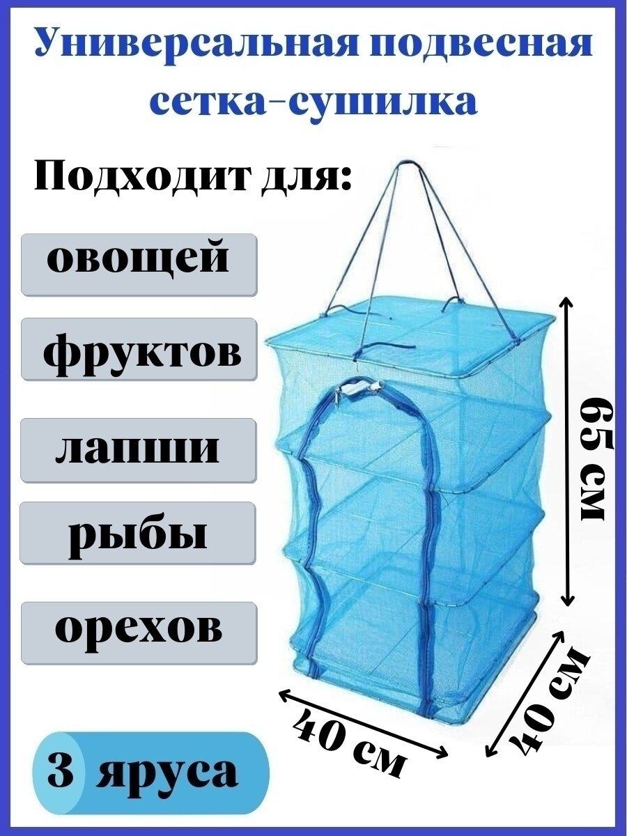 | Особенности | Складная сетка сушилка 3в1 40"40"60 см дегидратор 3 яруса сушить рыбу / овощи и фрукты |