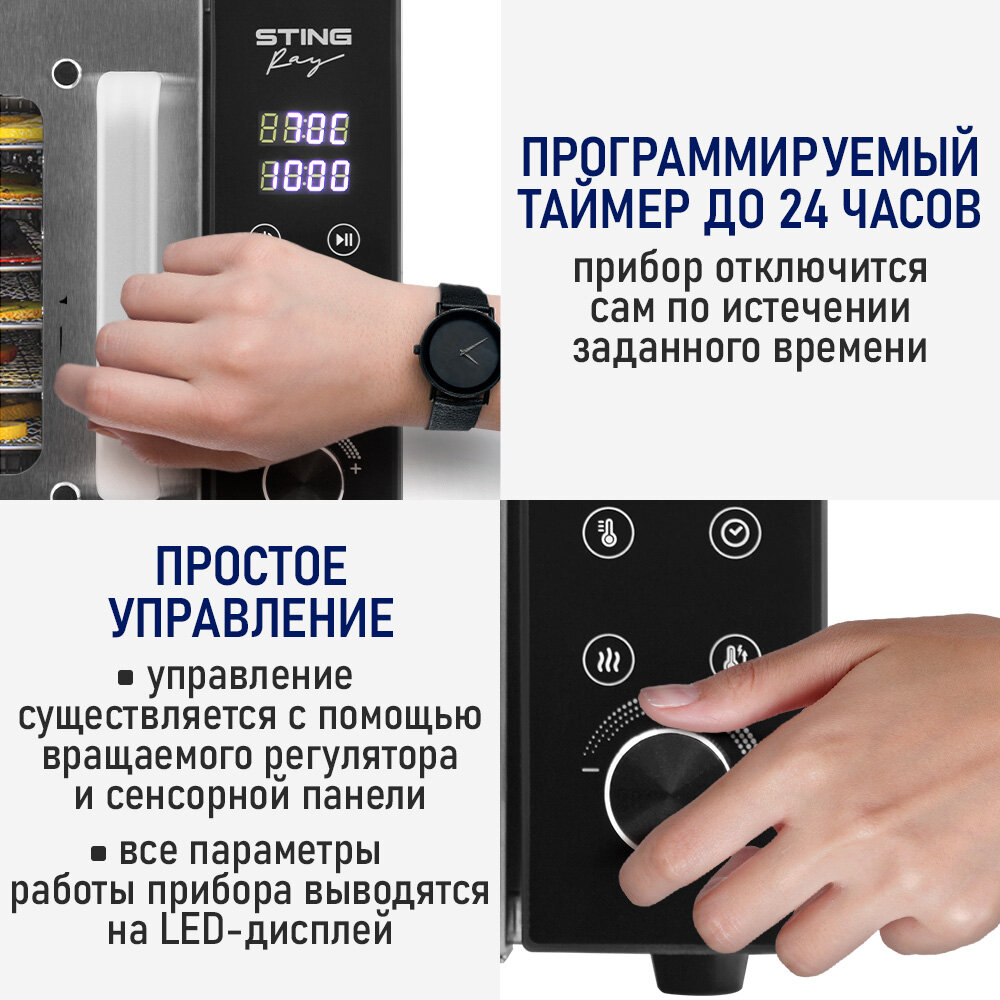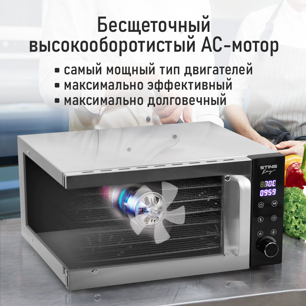 Дегидратор сушилка для овощей электросушилка STINGRAY ST-FD709A профессиональная с горизонтальным обдувом 6 поддонов черный интересное: