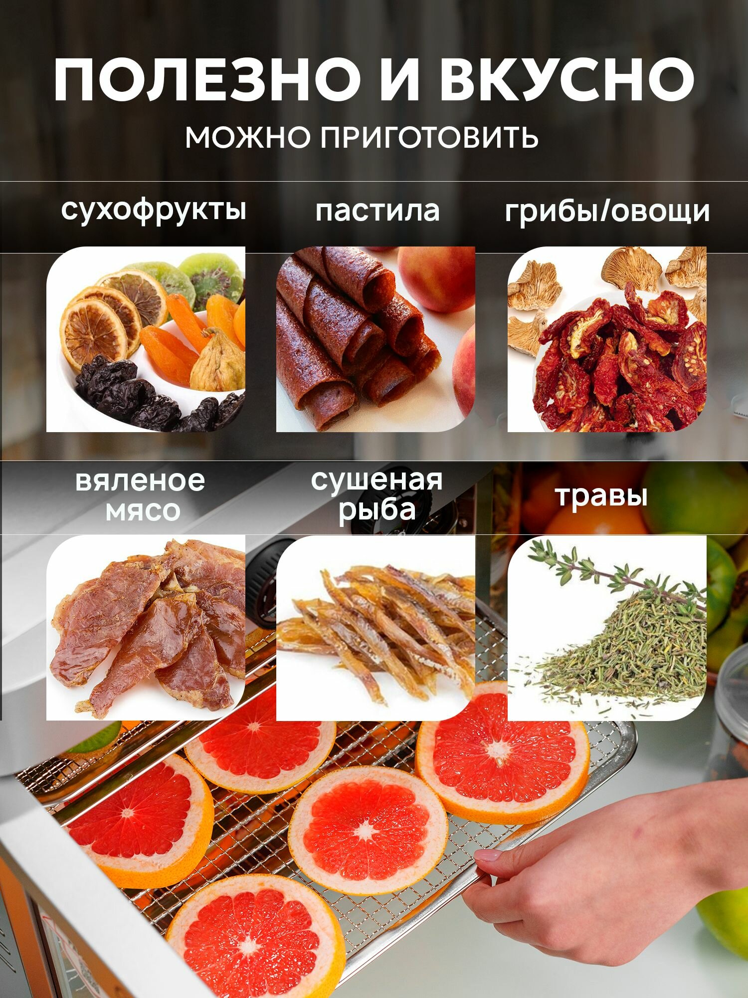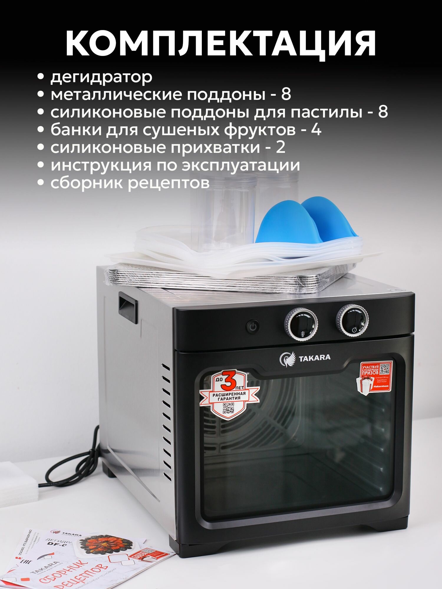 Сушилка для овощей и фруктов TAKARA DF-080 black в двухслойном корпусе из нержавеющей стали, Дегидратор для сушки электрический, Овощесушилка, Электросушилка для пастилы, мяса и грибов интересное: