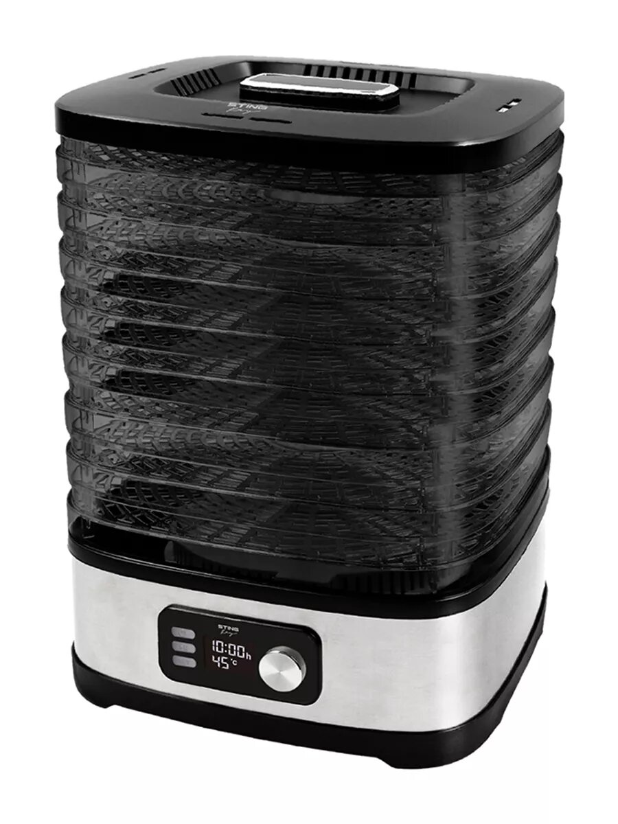 Дегидратор сушилка для овощей электросушилка STINGRAY ST-FD728E 10 поддонов (8 основных + 1 для пастилы + 1 для ягод) черный/черный интересное: