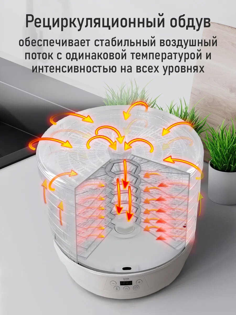 Дегидратор сушилка для овощей электросушилка STINGRAY ST-FD714A с автоматическим вращением поддонов 7 поддонов белый интересное: