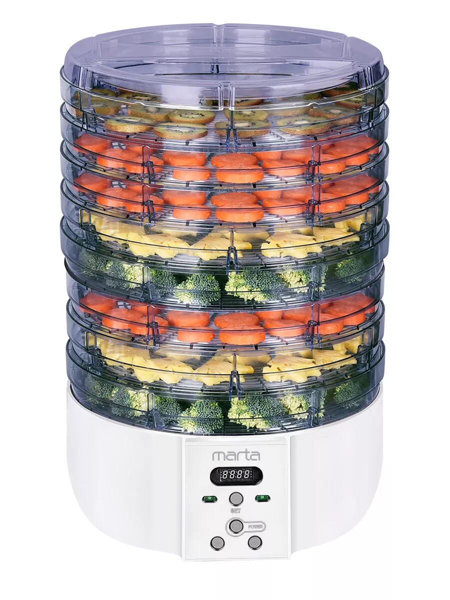 Ниже Вы можете прочитать отзывы на Дегидратор сушилка для овощей электросушилка MARTA MT-FD1886E 11 поддонов (8 основных + 3 для пастилы) белый жемчуг, ознакомится с подробными характеристиками, посмотреть интересные обзоры и фотографии на Дегидратор сушилка для овощей электросушилка MARTA MT-FD1886E 11 поддонов (8 основных + 3 для пастилы) белый жемчуг.