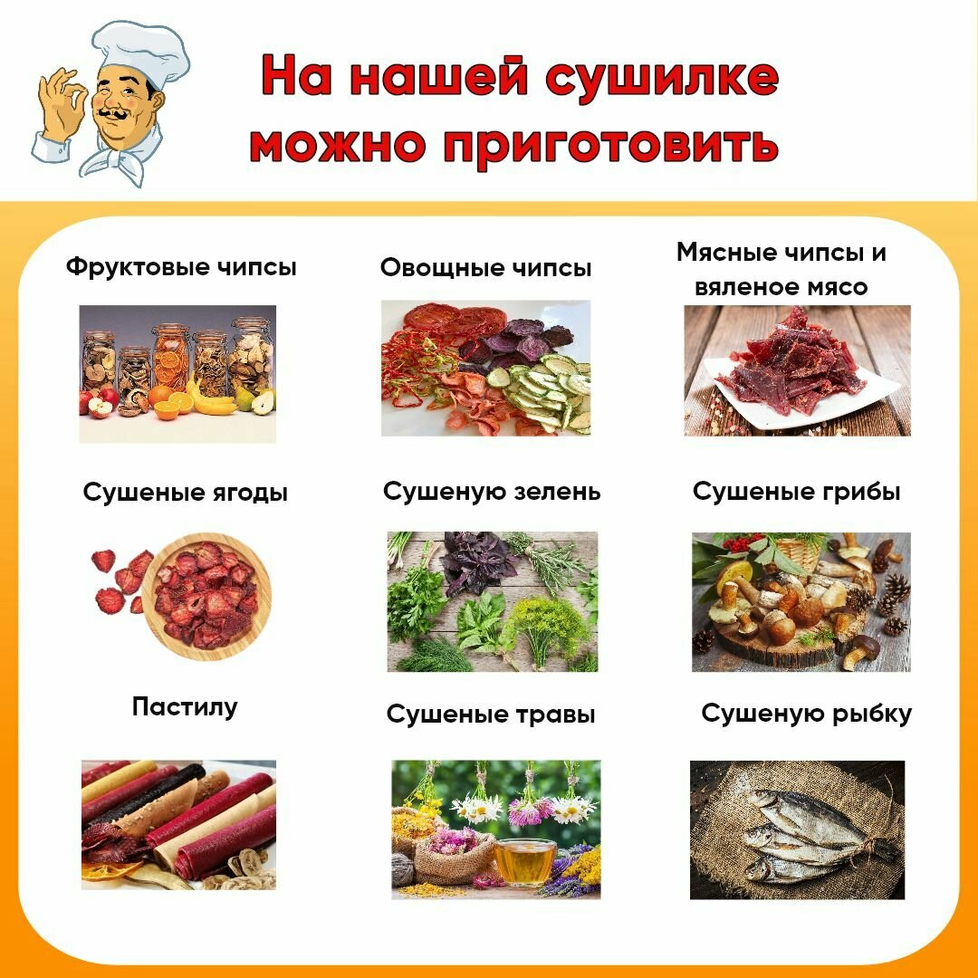 | Комплектация | Сушилка для овощей и фруктов, Инструкция, Книга рецептов, Сушилка для овощей фруктов грибов зелени трав ягод, дегидратор, сушилка для пастилы, сушилка для овощей и фруктов недорого, сушилка для мяса, сушилка для курицы Проращивание семян, подогрев рассады |