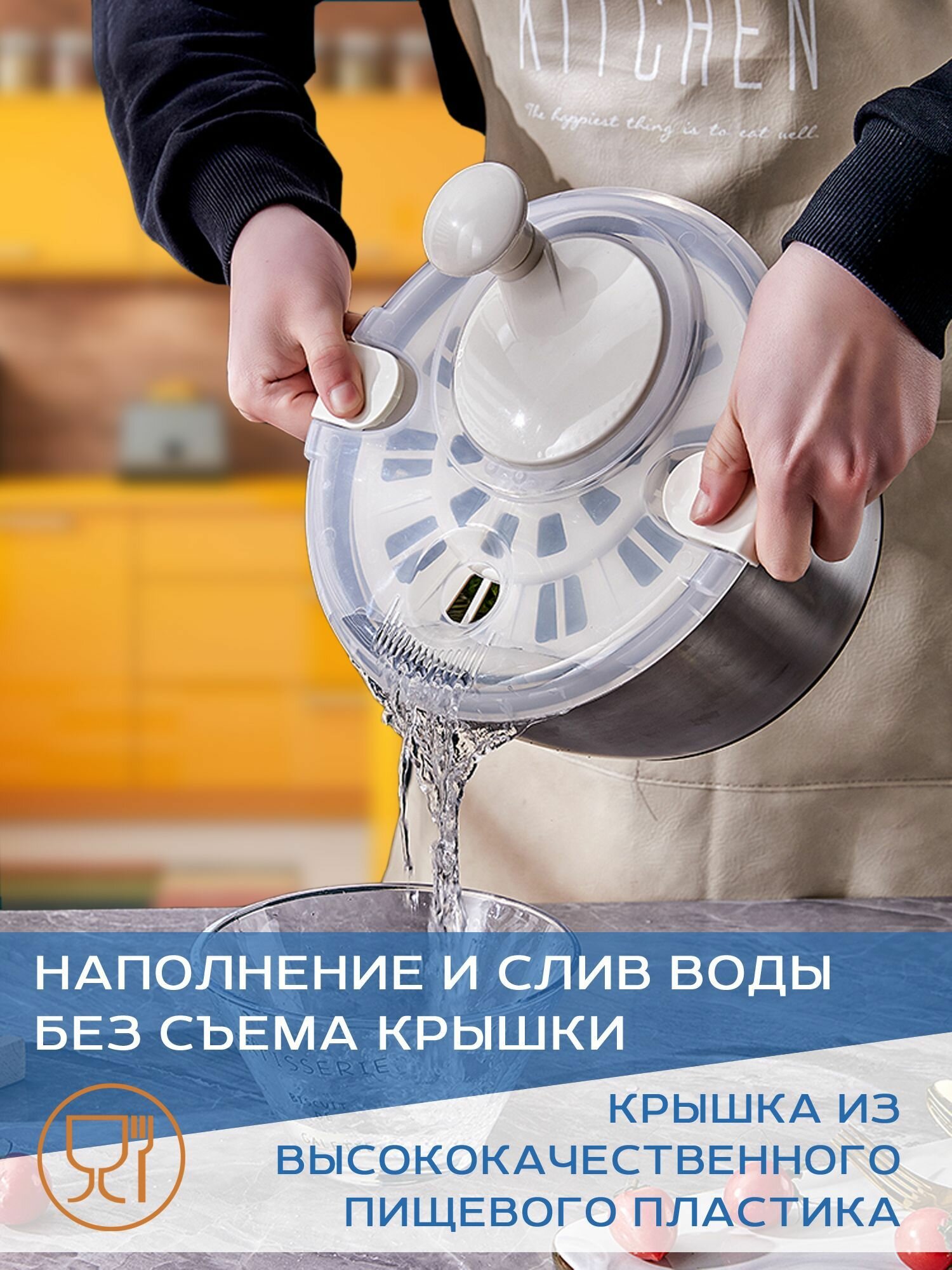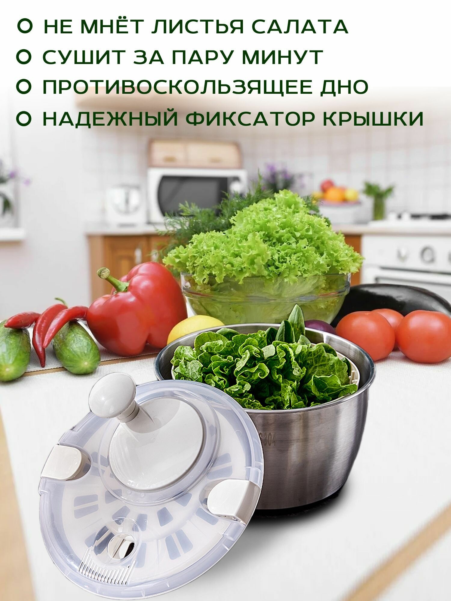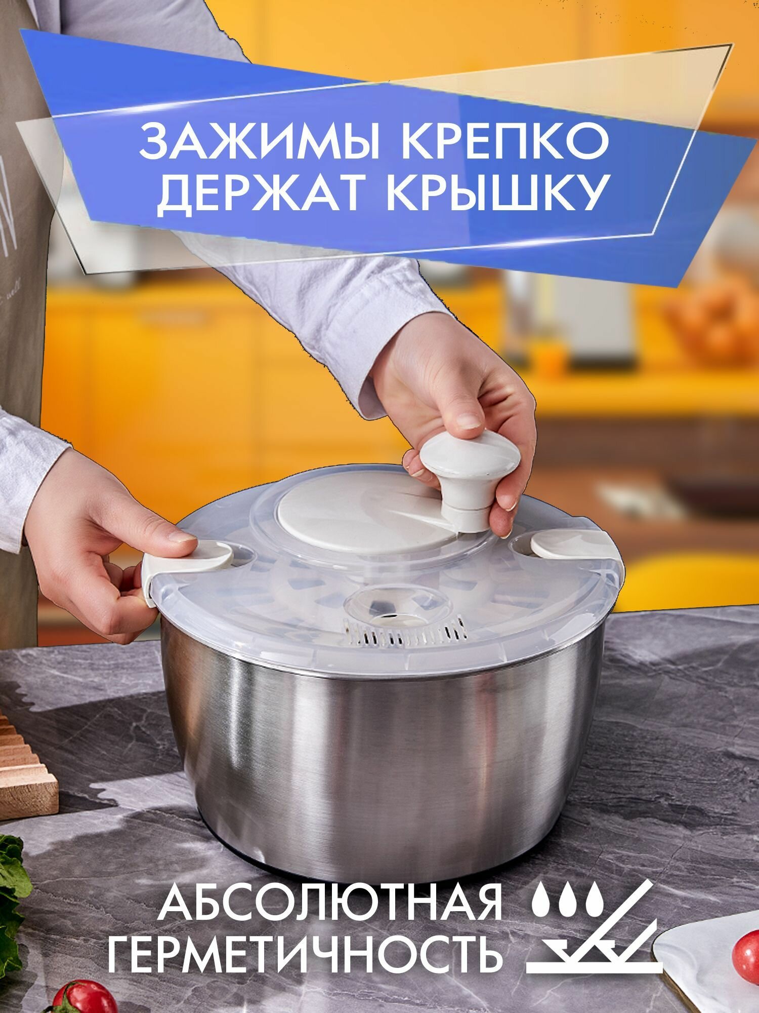 Центрифуга для зелени, сушилка салата, сушка овощей ручная с чашей из нержавеющей стали интересное: