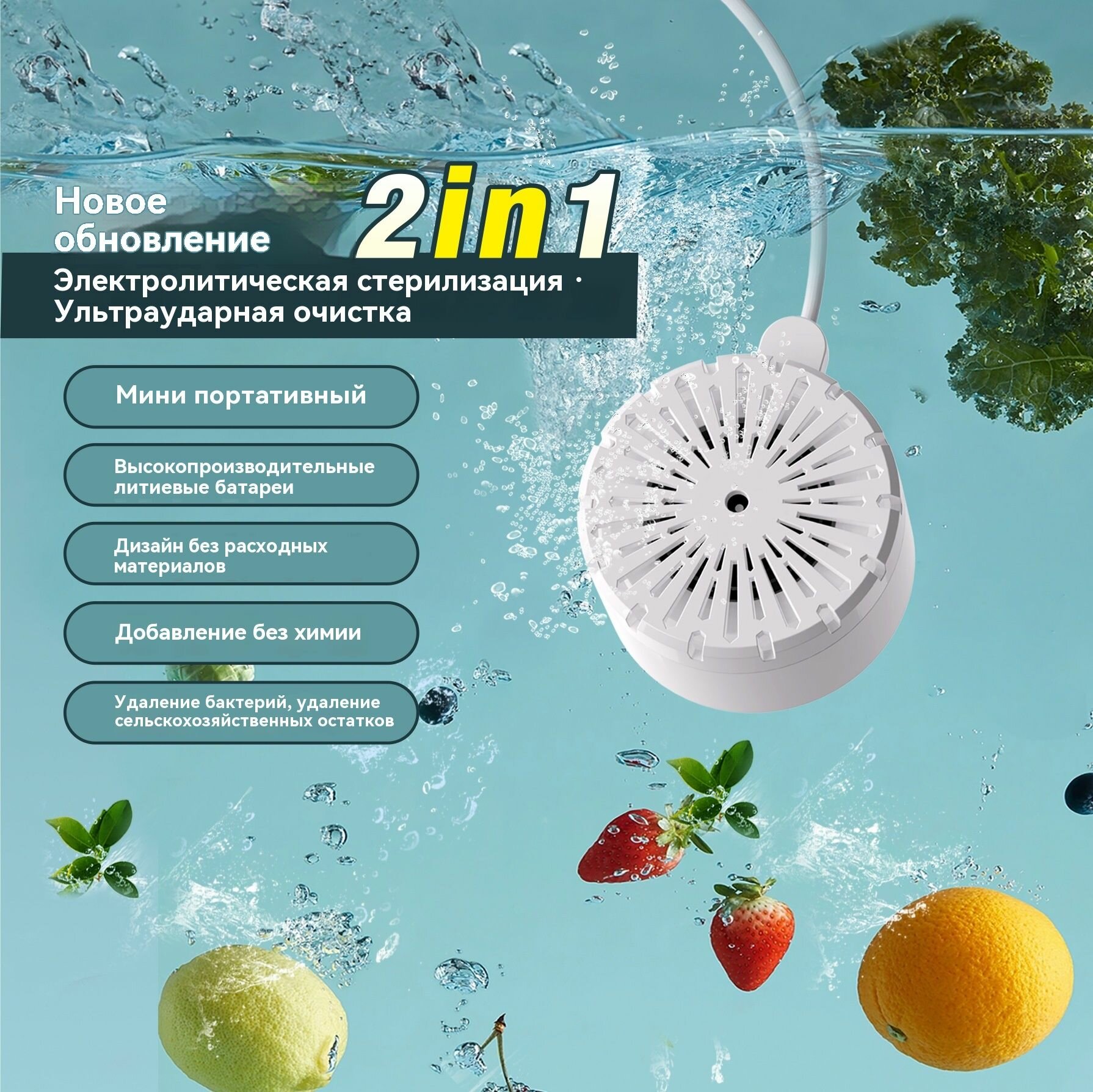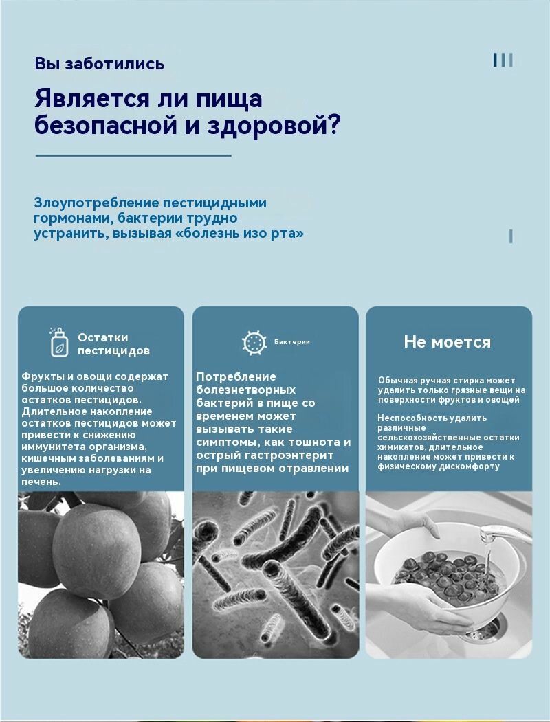 Бесконтактная ультразвуковая мойка для овощей и фруктов, очиститель овощей, дезинфектор для продуктов интересное: