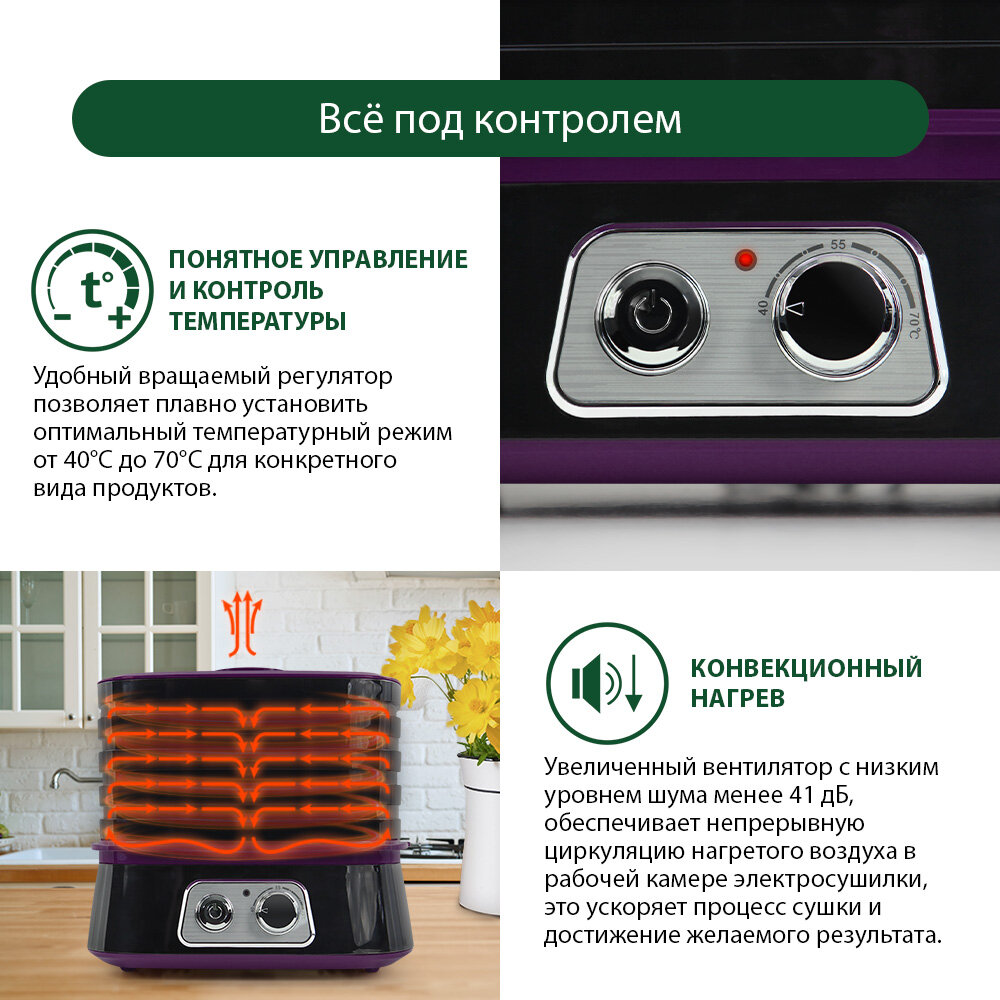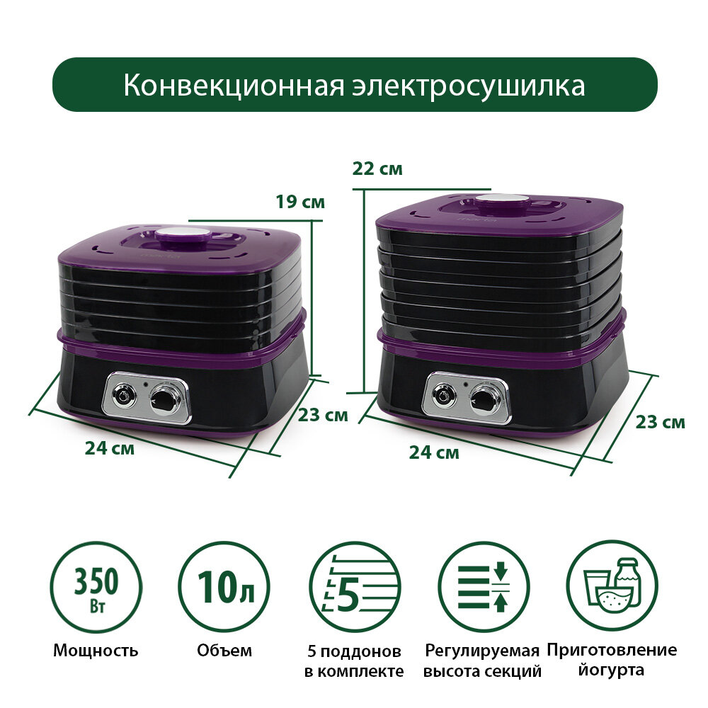 Дегидратор сушилка для овощей электросушилка MARTA MT-1946 йогуртница 5 поддонов черный/фиолетовый интересное: