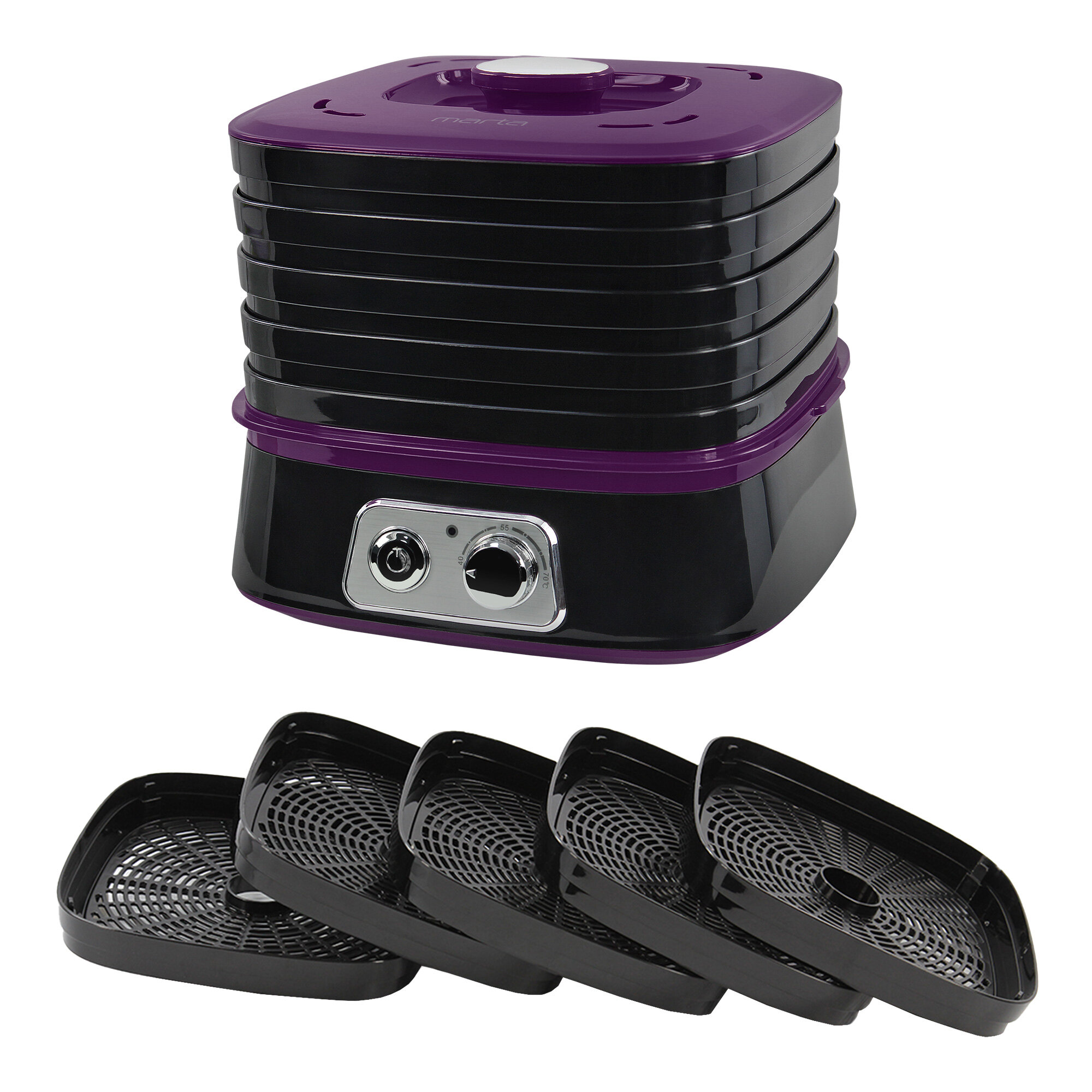 Купить Дегидратор сушилка для овощей электросушилка MARTA MT-1946 йогуртница 5 поддонов черный/фиолетовый