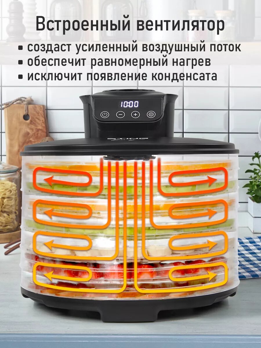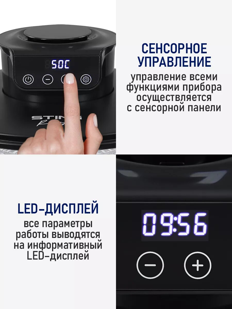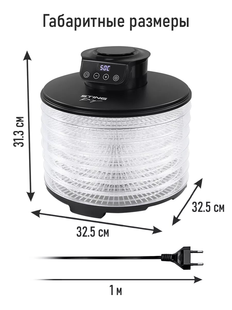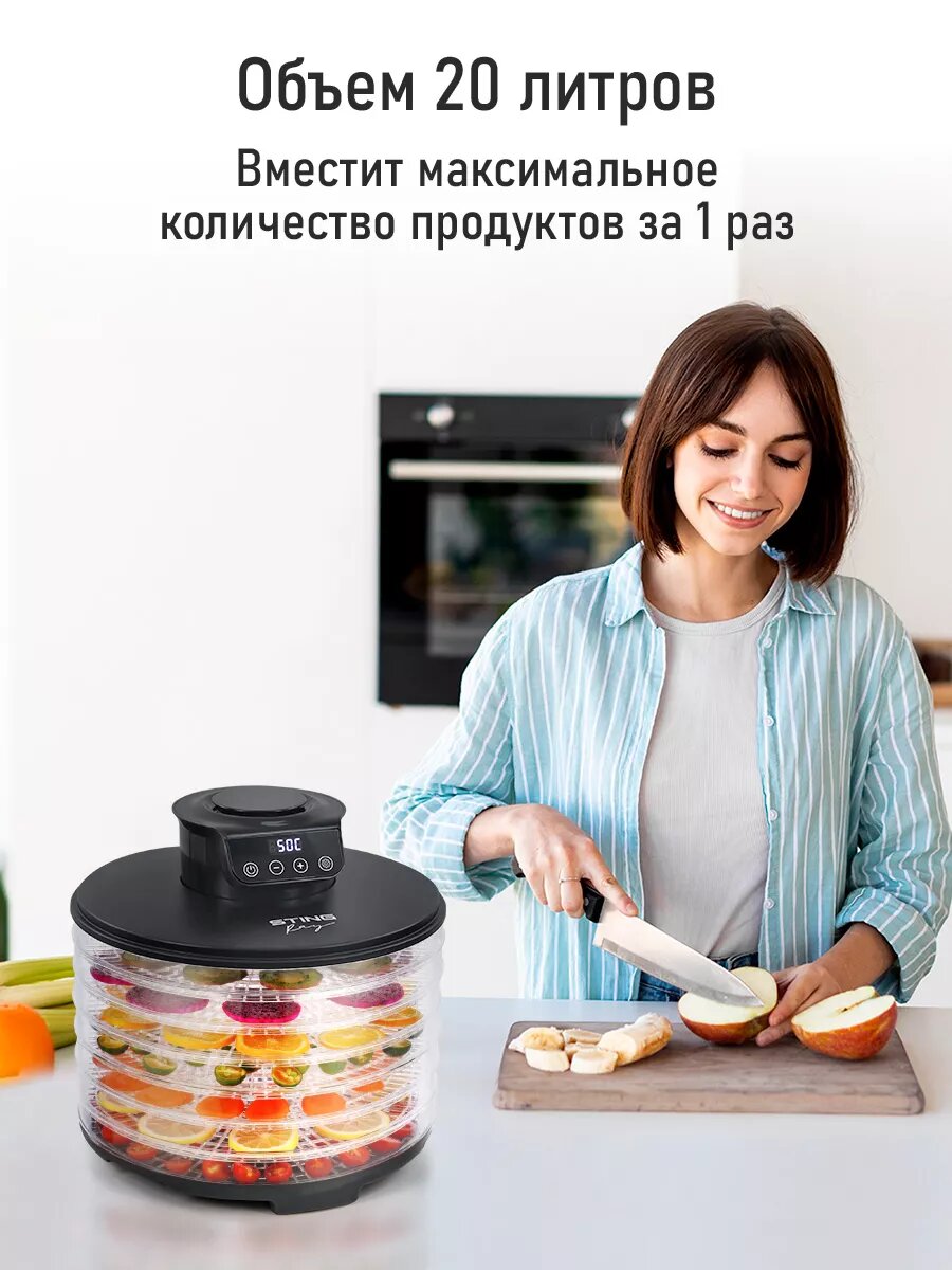 Дегидратор сушилка для овощей электросушилка STINGRAY ST-FD712B с верхним обдувом 7 поддонов черный интересное: