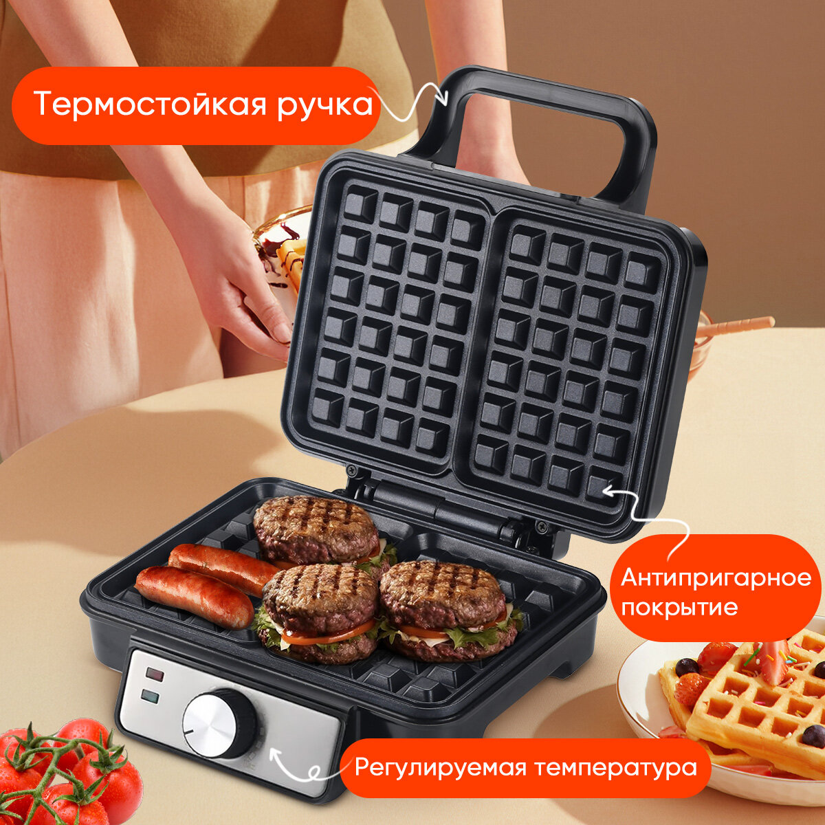 Вафельница KaringBee MB-P15, регулируемая температура, Гриль электрический антипригарный, для венских вафель интересное: