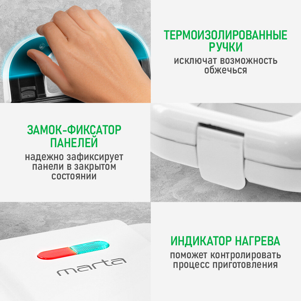 Прибор для выпечки MARTA MT-SM1737E 6 в 1 белый жемчуг вафельница интересное: