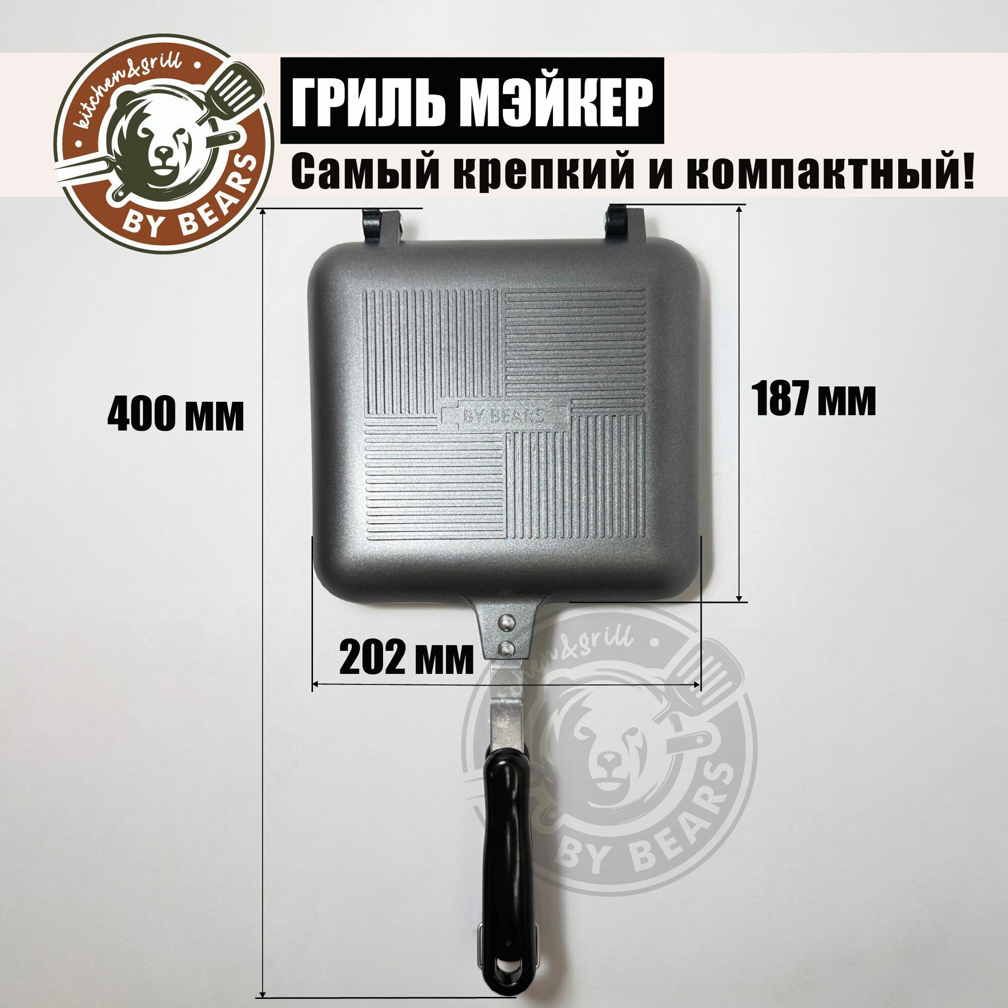 Грильница By Bears, для мяса, овощей, сэндвичей, антипригарная, складная, 4 порции, серая интересное: