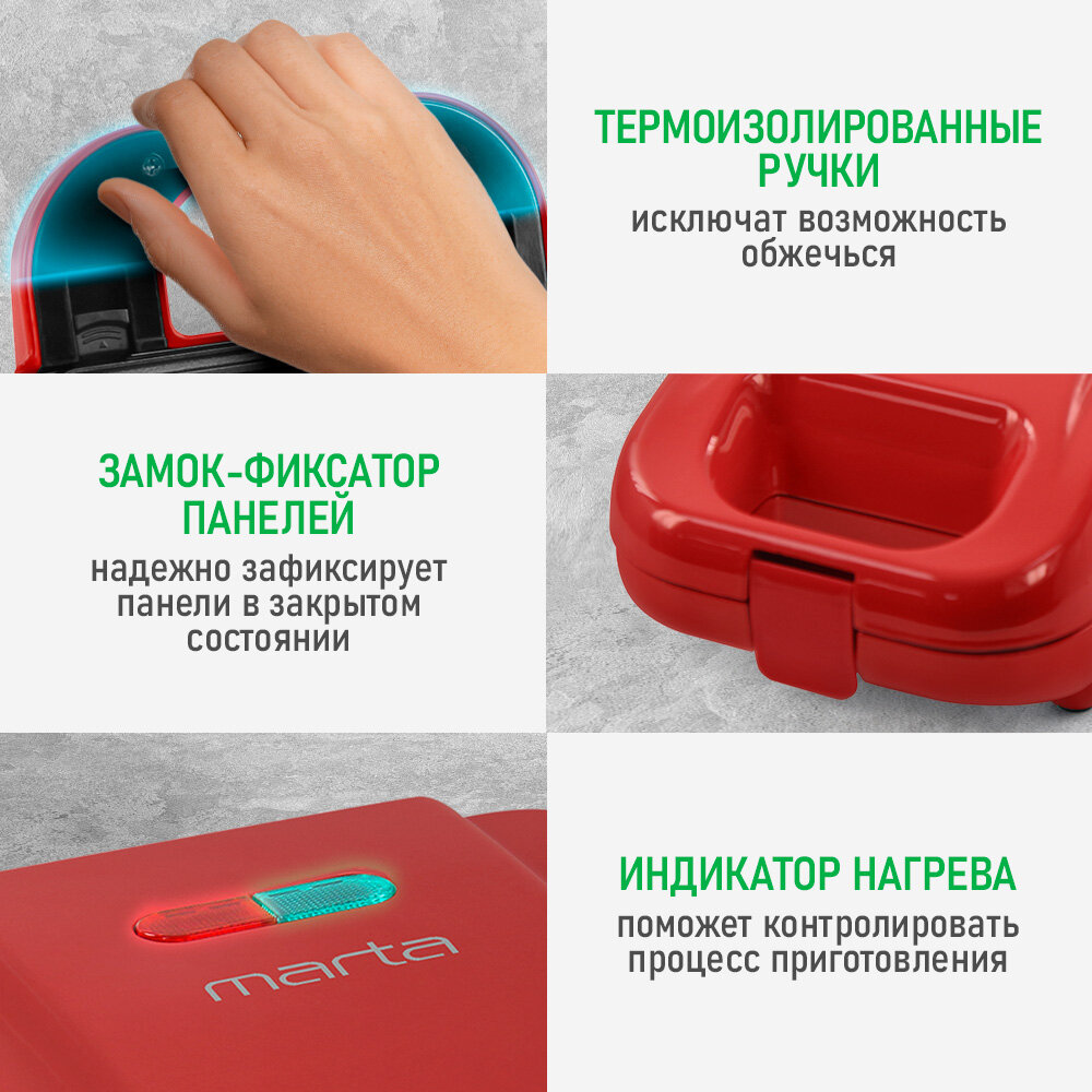 Прибор для выпечки MARTA MT-SM1737B 3 в 1 красный рубин интересное: