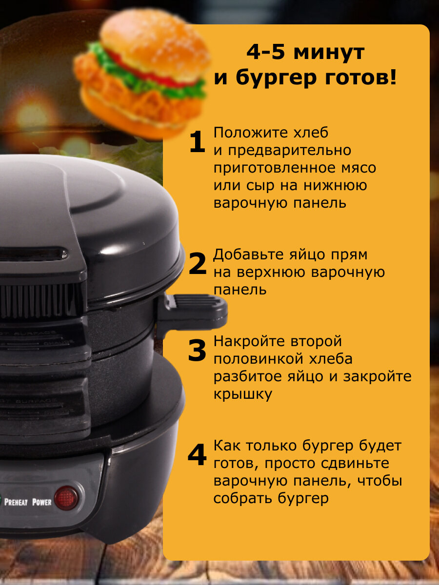 Бургерница, гриль для приготовления сэндвичей, Бургерница-сендвичница, гамбургеров на завтрак интересное: