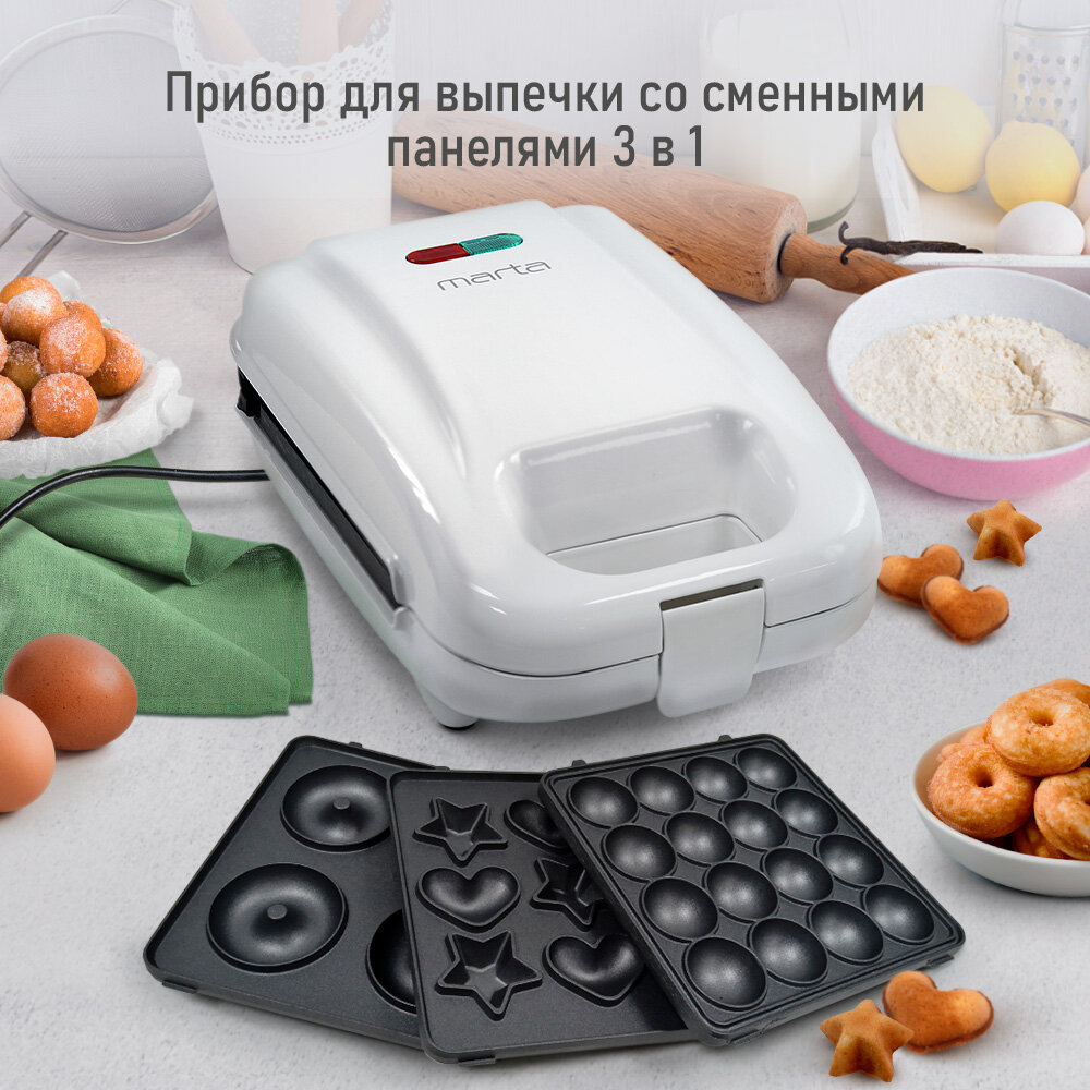 Прибор для выпечки MARTA MT-SM1737C 3 в 1 белый жемчуг интересное: