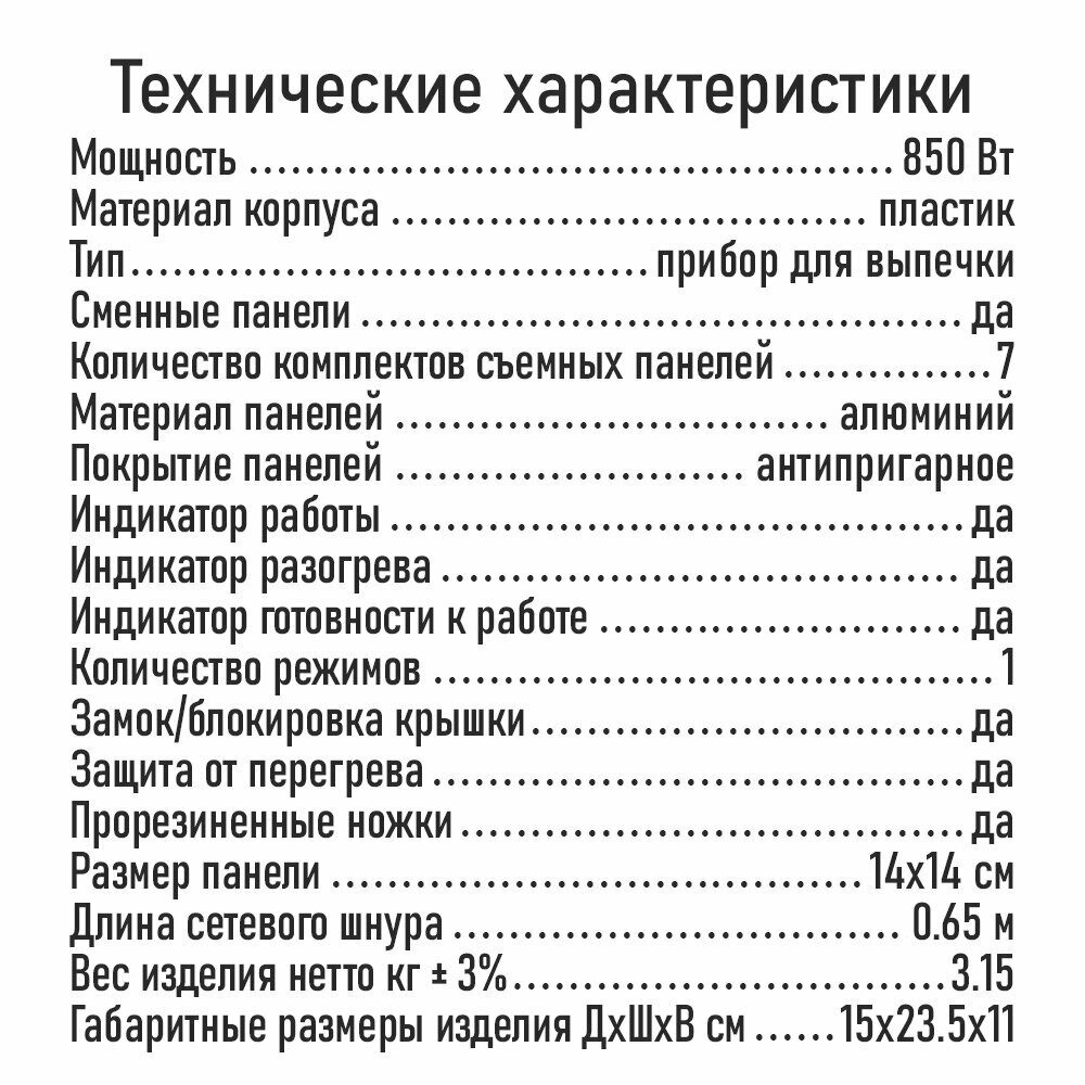 | Вид панели | для печенья / пластины для вафель |