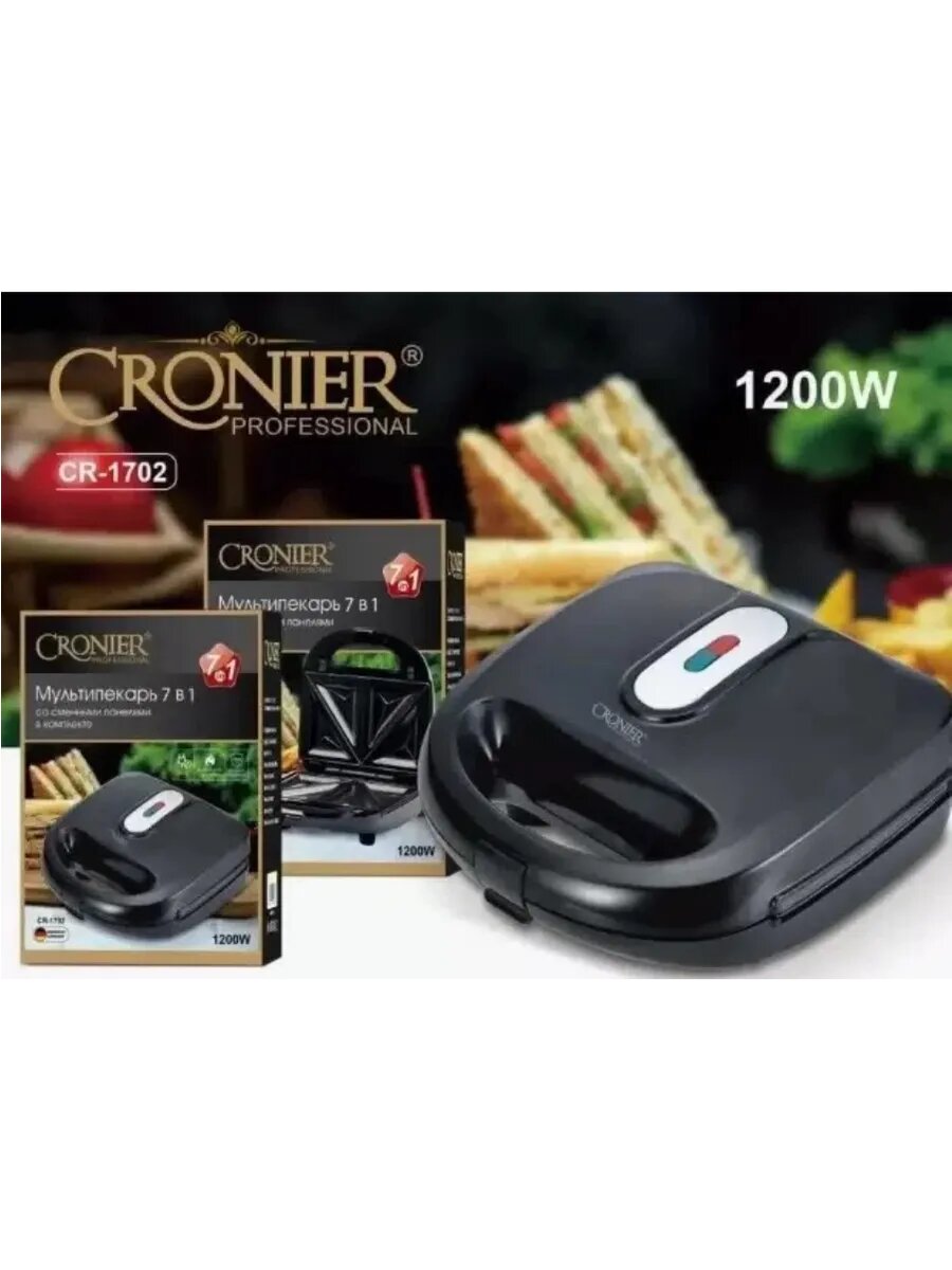 Купить Мультипекарь Cronier CR-1702, 7 в 1, мощность 1200Вт, тефлоновое покрытие, черный