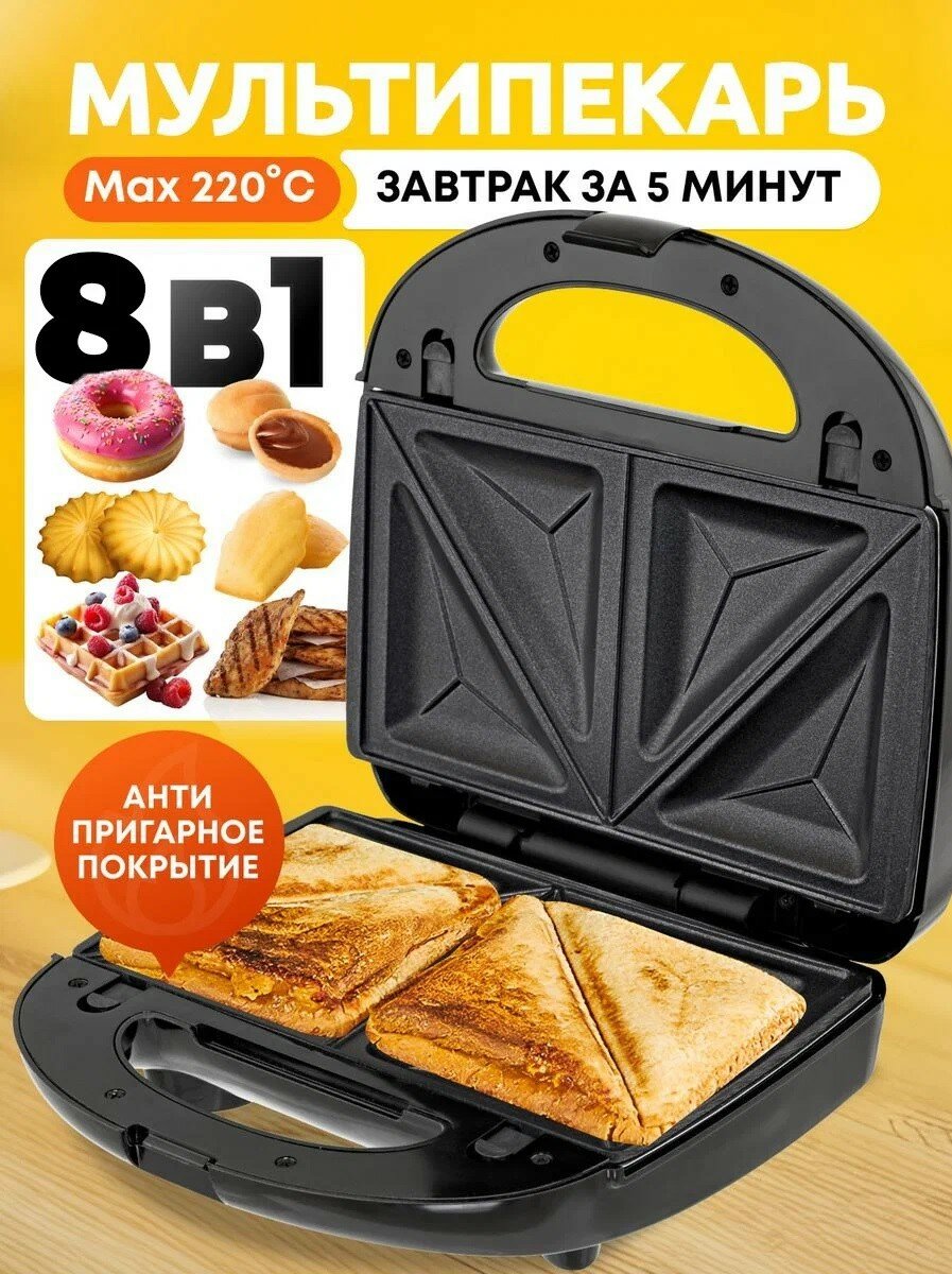 Мультипекарь для приготовления вафель, вафельница, сендвичница электрическая, орешница, гриль,8 в 1, индикатор нагрева, 1600ВТ, черный интересное: