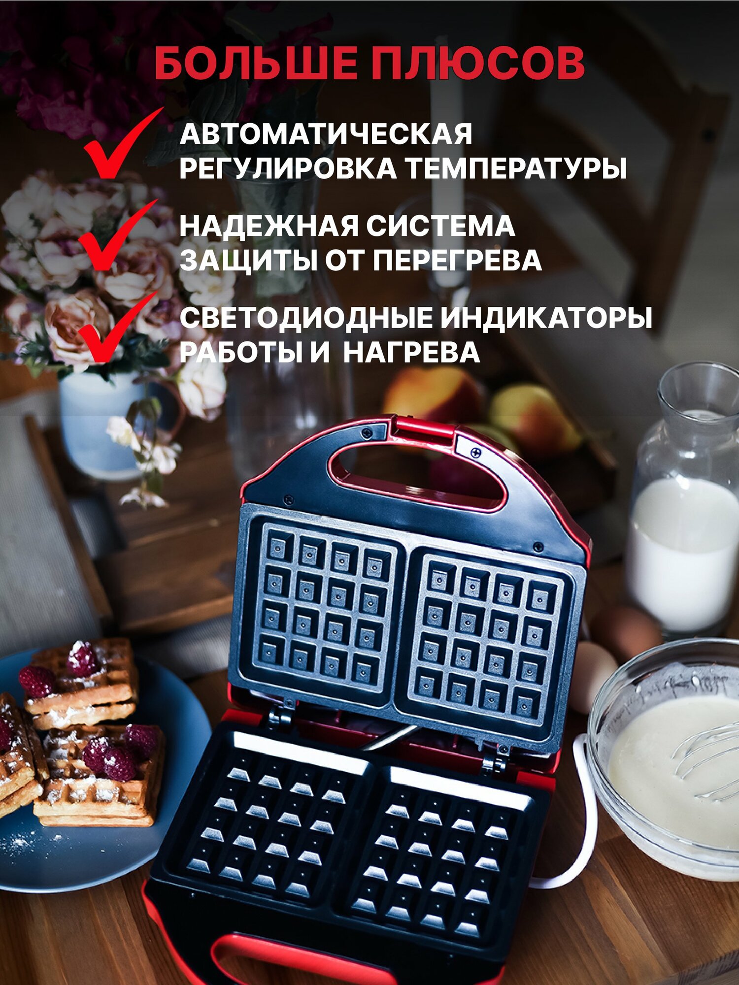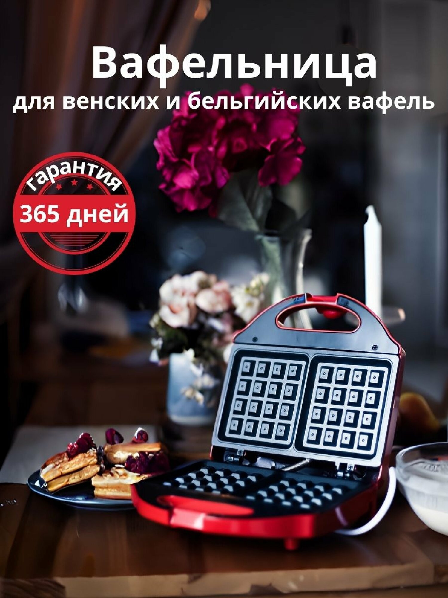Вафельница LATS LT-109 электрическая для венских и бельгийских вафель, красная интересное: