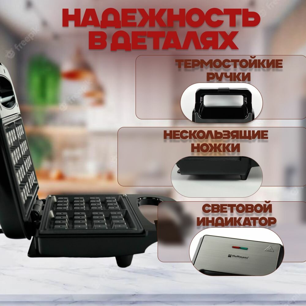 Купить Hoffmans Вафельница электрическая электровафельница, черно-серый