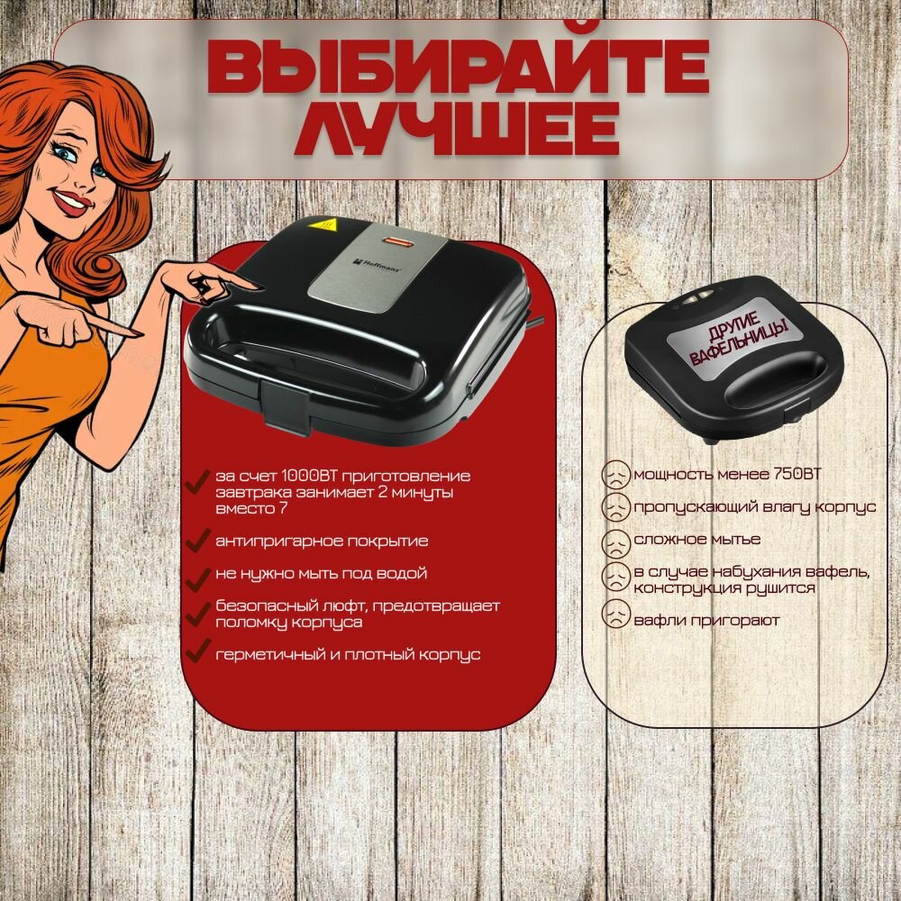Hoffmans Вафельница электрическая электровафельница, черно-серый интересное: