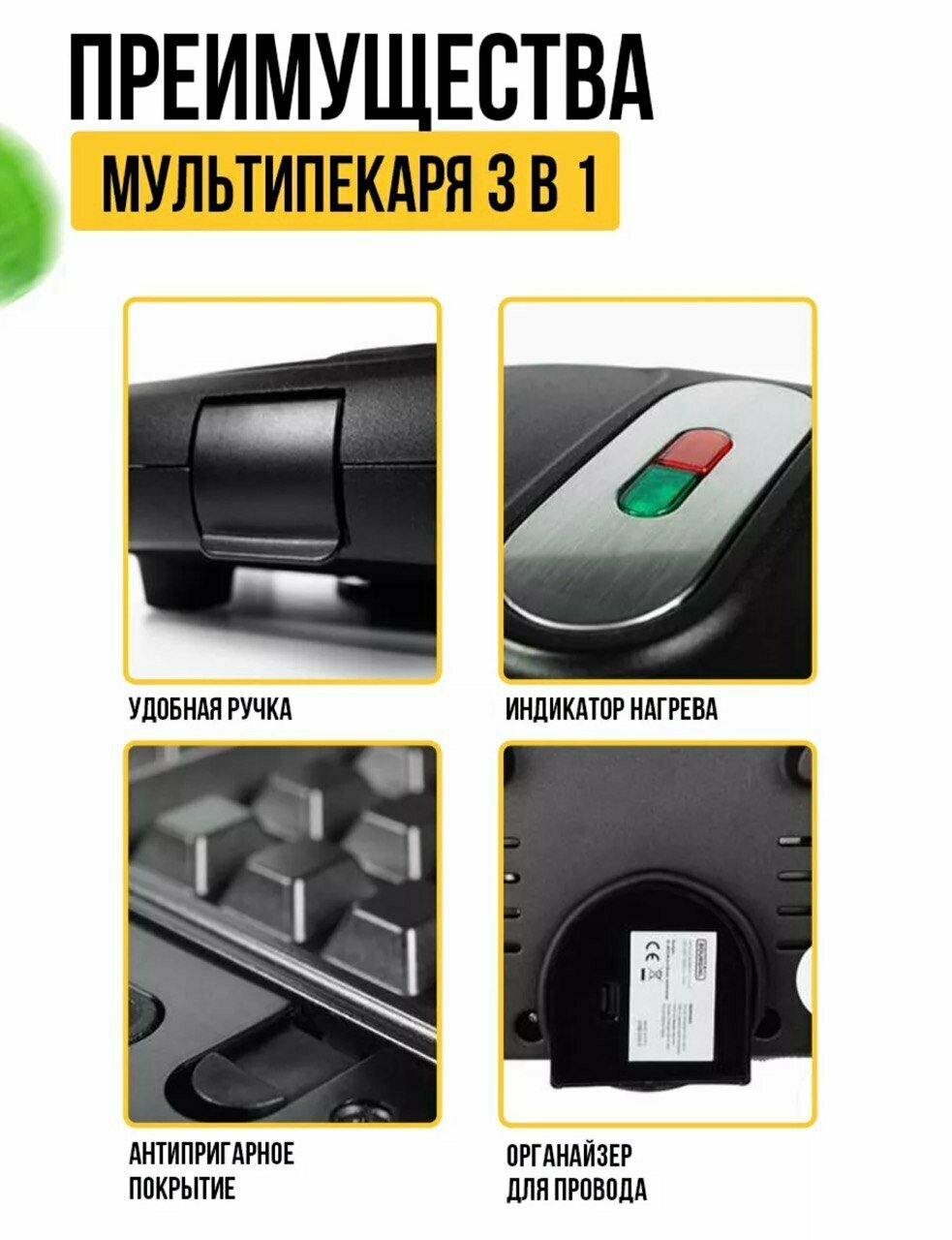 Электрический мультипекарь, вафельница 3 в 1, 1200 вт, черный интересное: