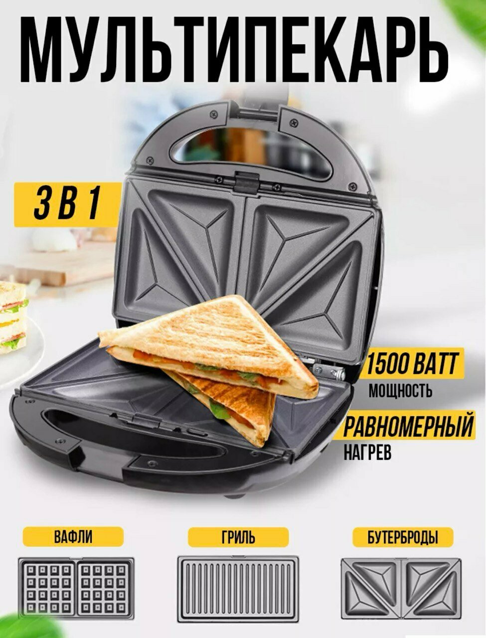 Купить Электрический мультипекарь, вафельница 3 в 1, 1200 вт, черный