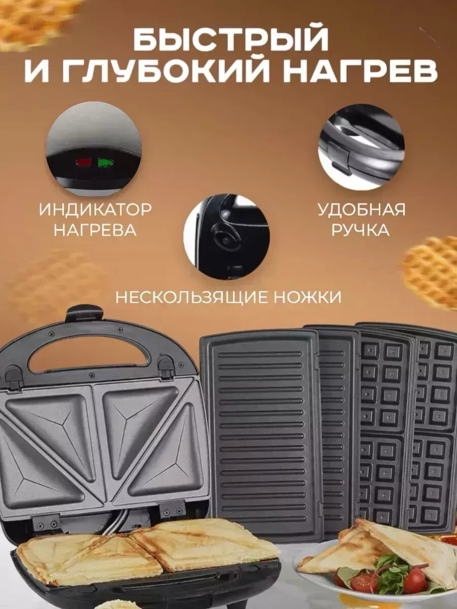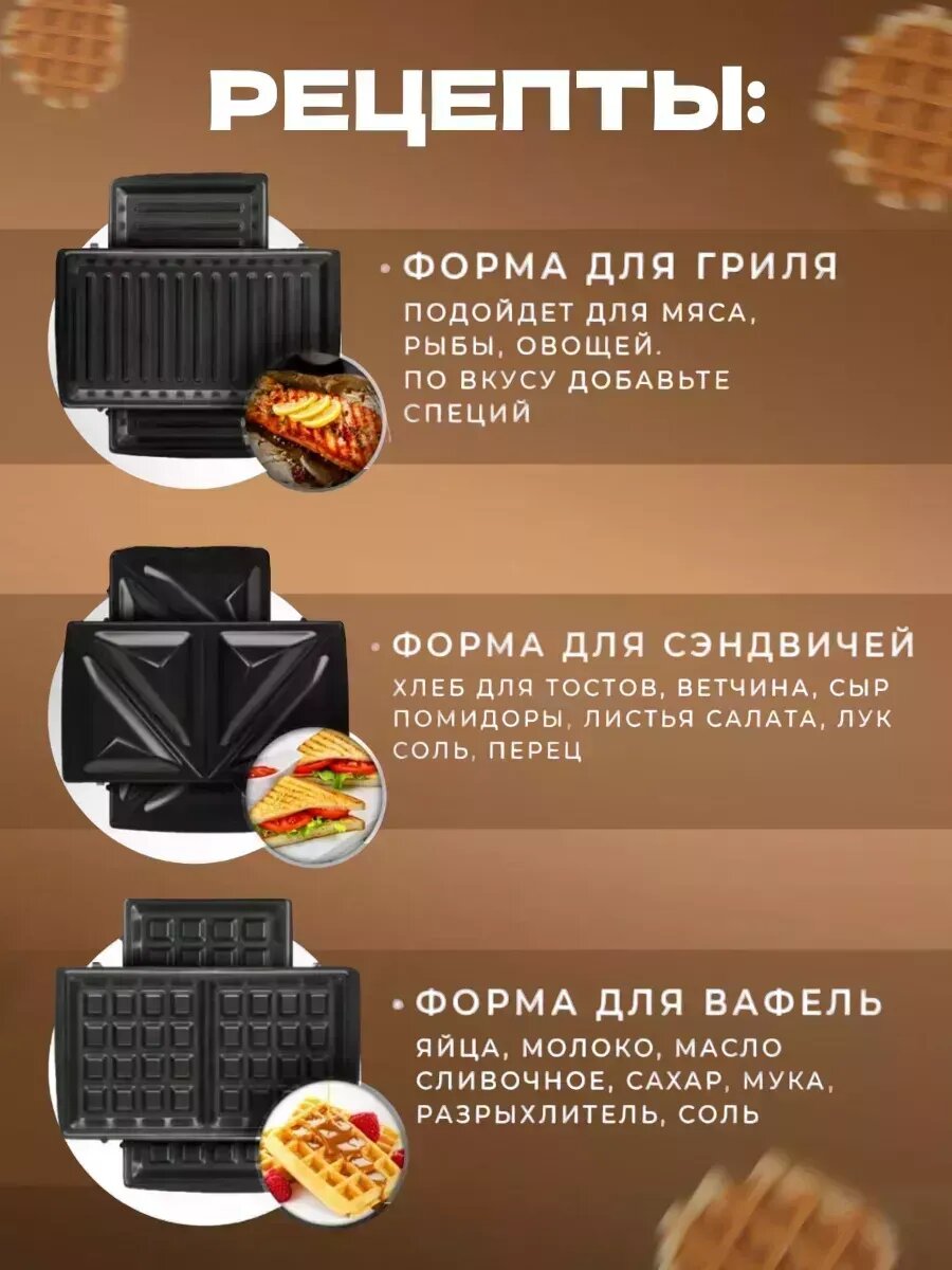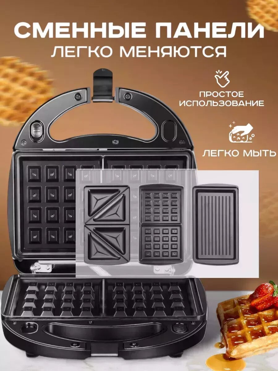 Мультипекарь с насадками 3 в 1 электрическая вафельница интересное: