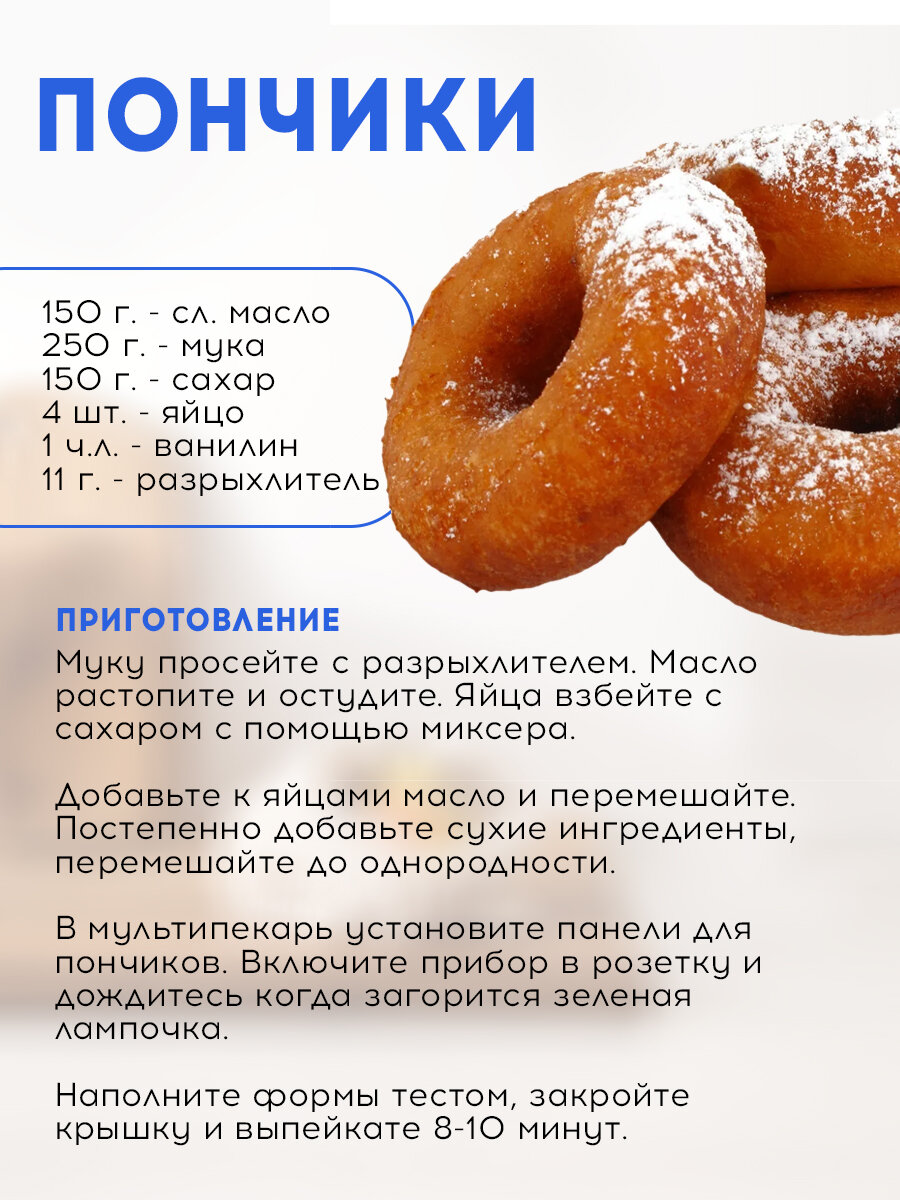 | Вид панели | вафли / гриль / орешки / пончики / сэндвичи |