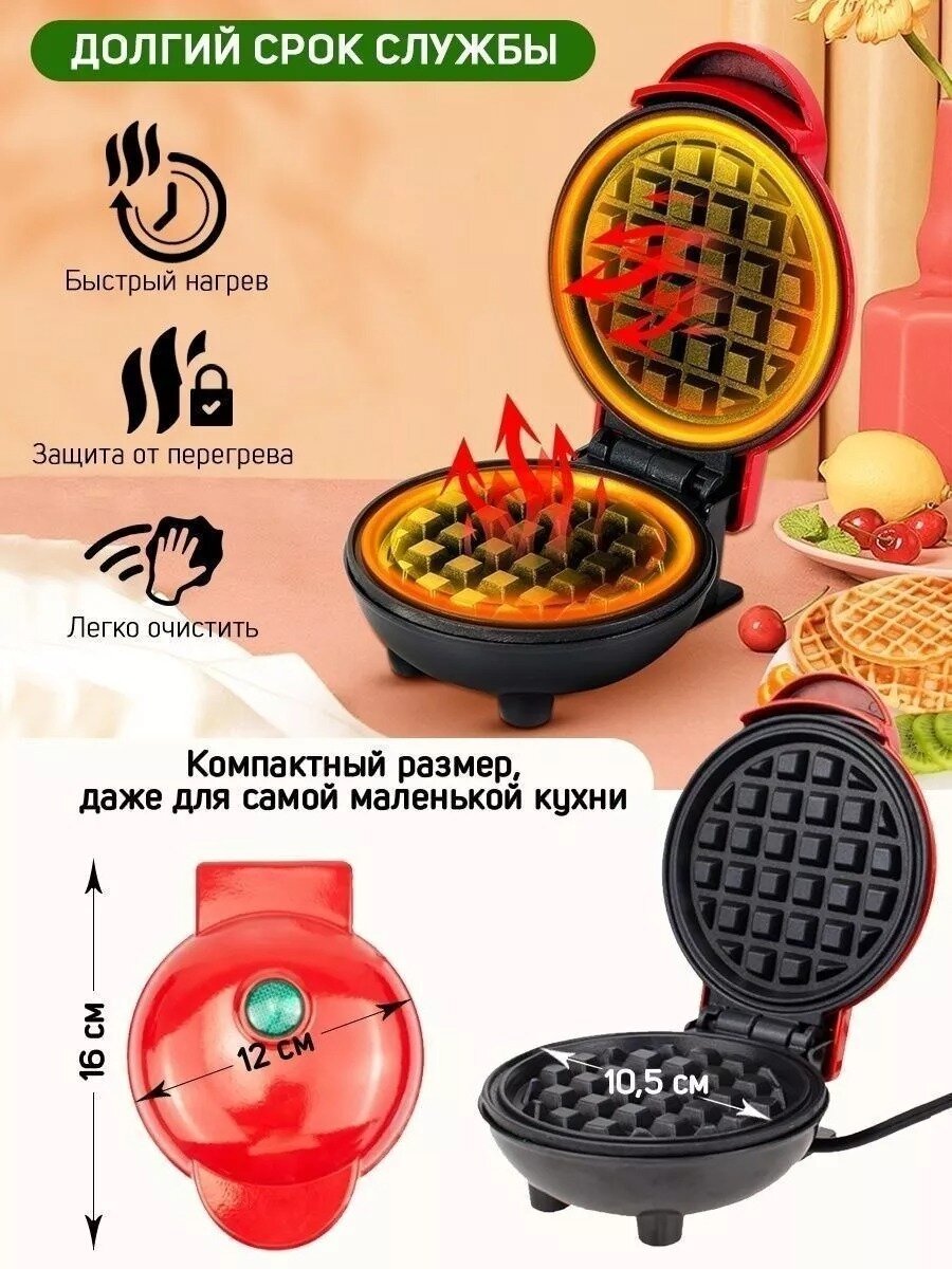 Вафельница электрическая для венских и бельгийских вафель, красная интересное: