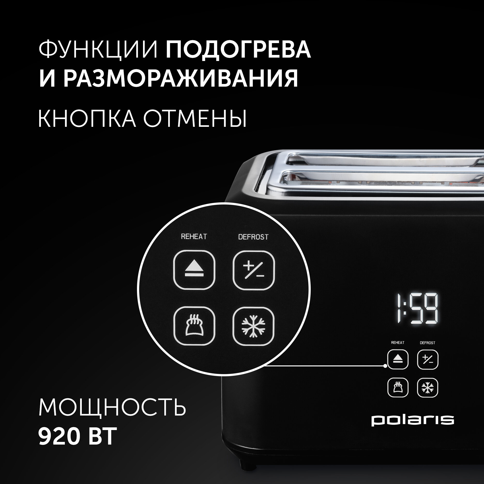 Электрический тостер Polaris PET 0929A, 7 степеней обжарки, 920W, черный интересное: