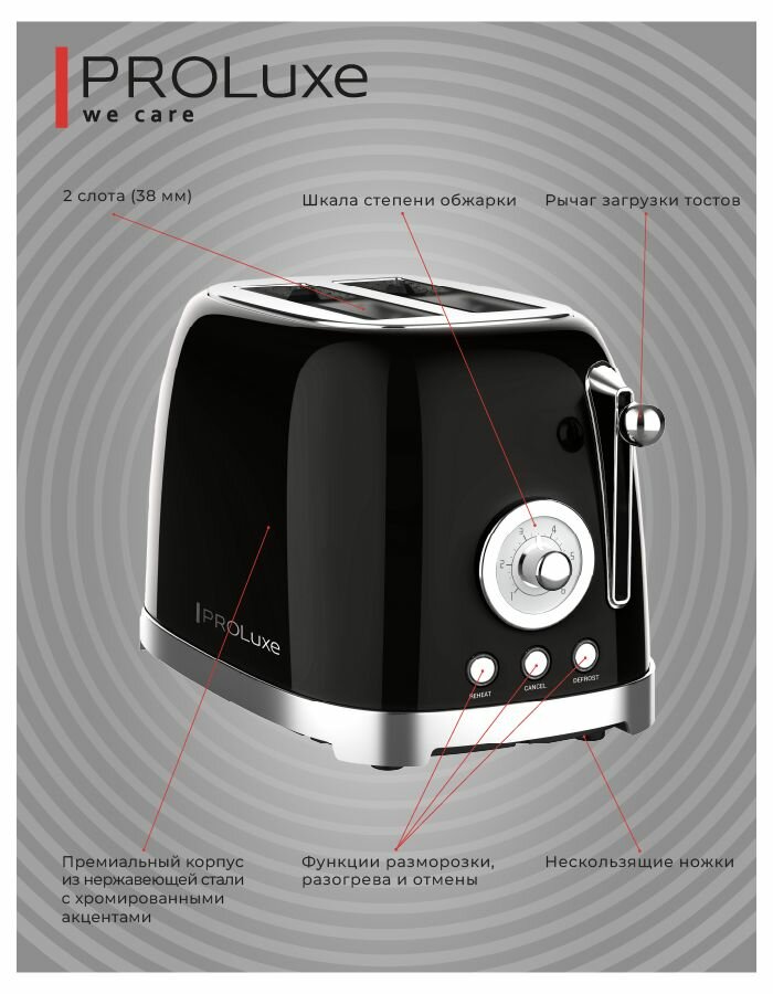 Тостер электрический PROLuxe Stylish , черный, PL-TOBLK01 интересное: