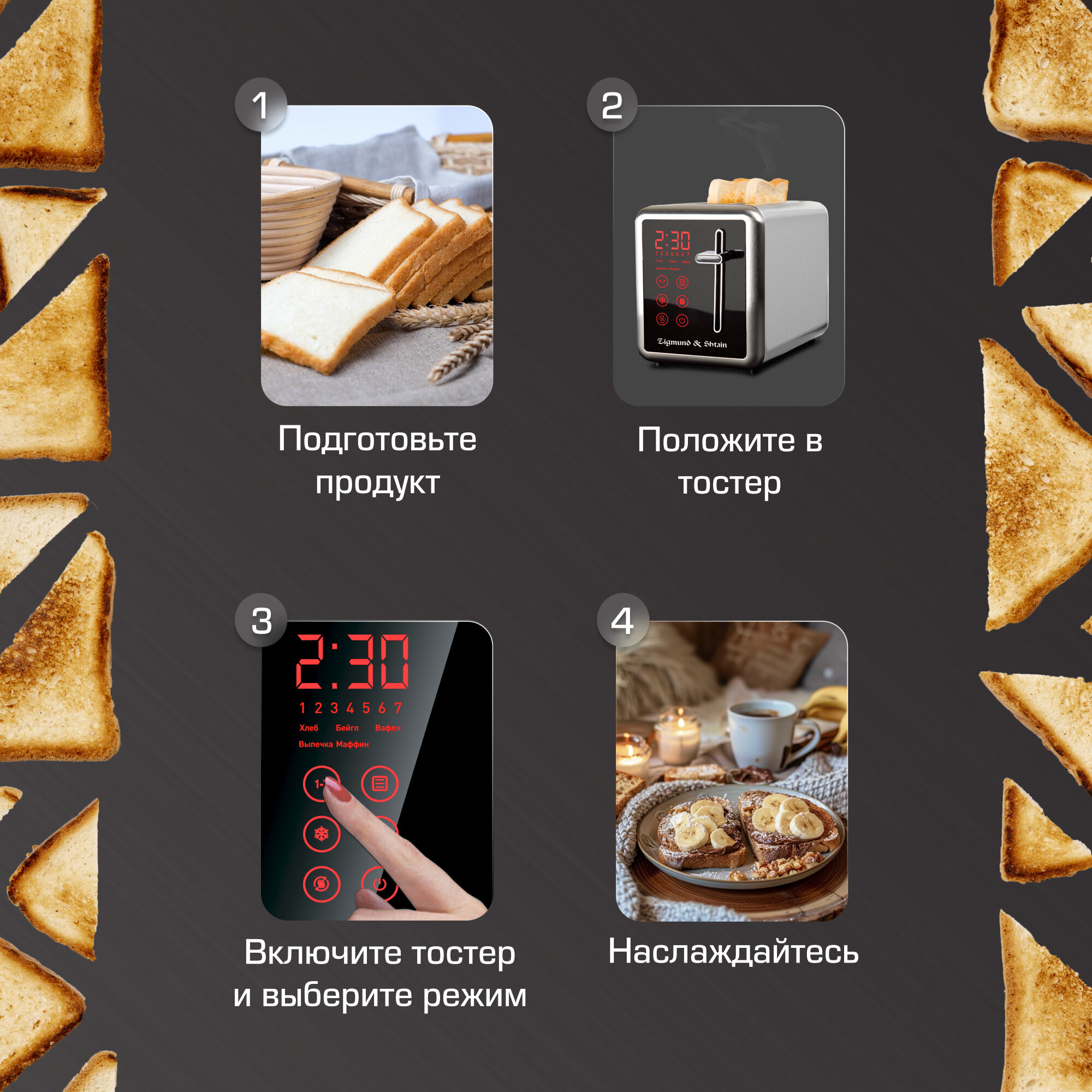Тостер Zigmund & Shtain ST-100, 7 степеней поджаривания, 1000 Вт, стальной интересное: