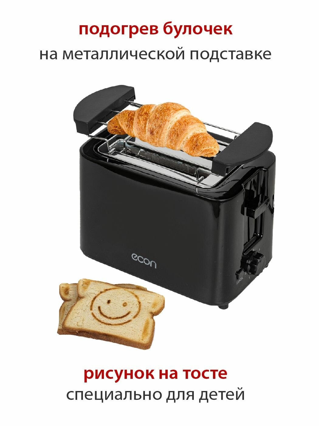 Тостер ECON ECO-250TS black на 2 тоста с рисунком, 7 уровней поджаривания, функция подогрева и размораживания, 700 Вт интересное: