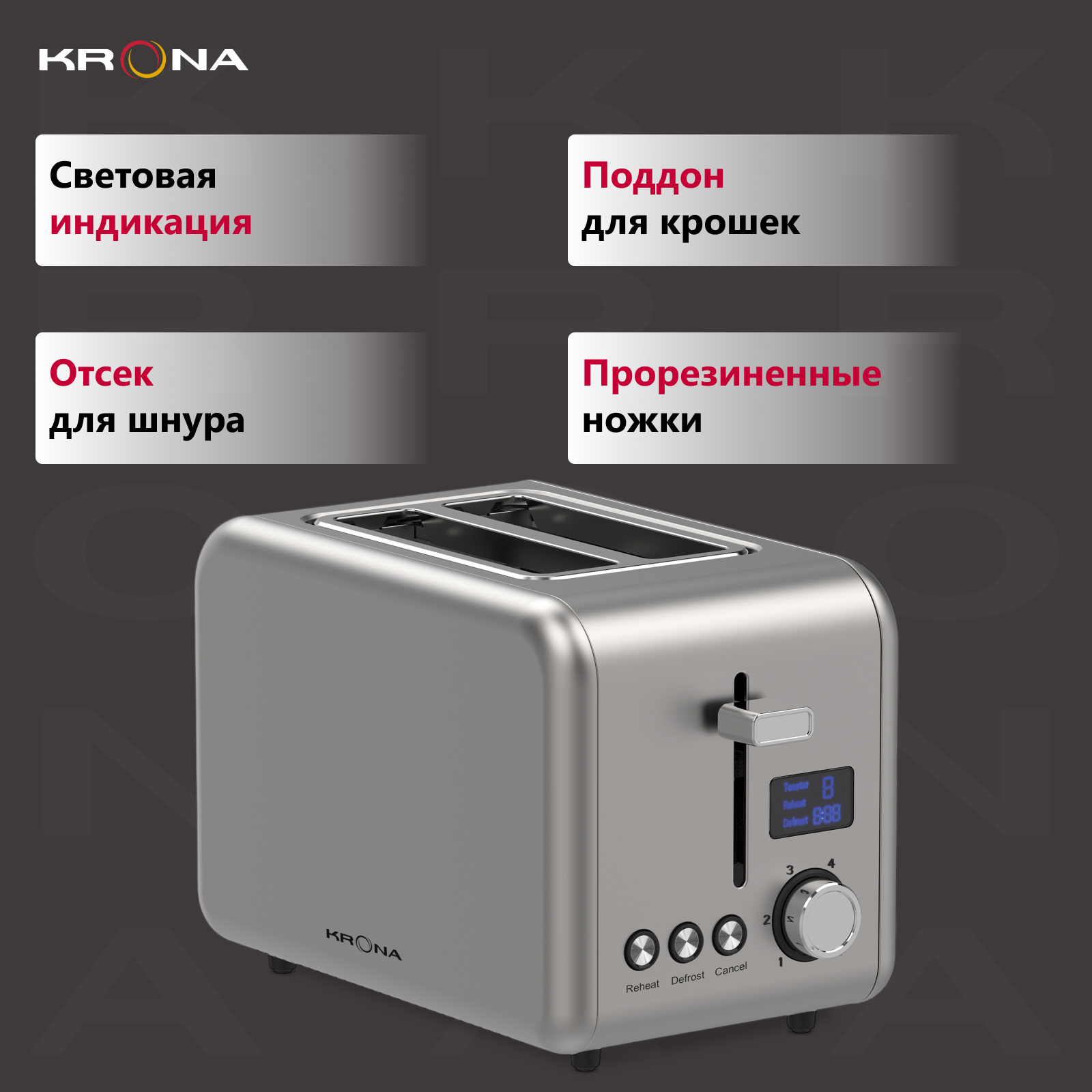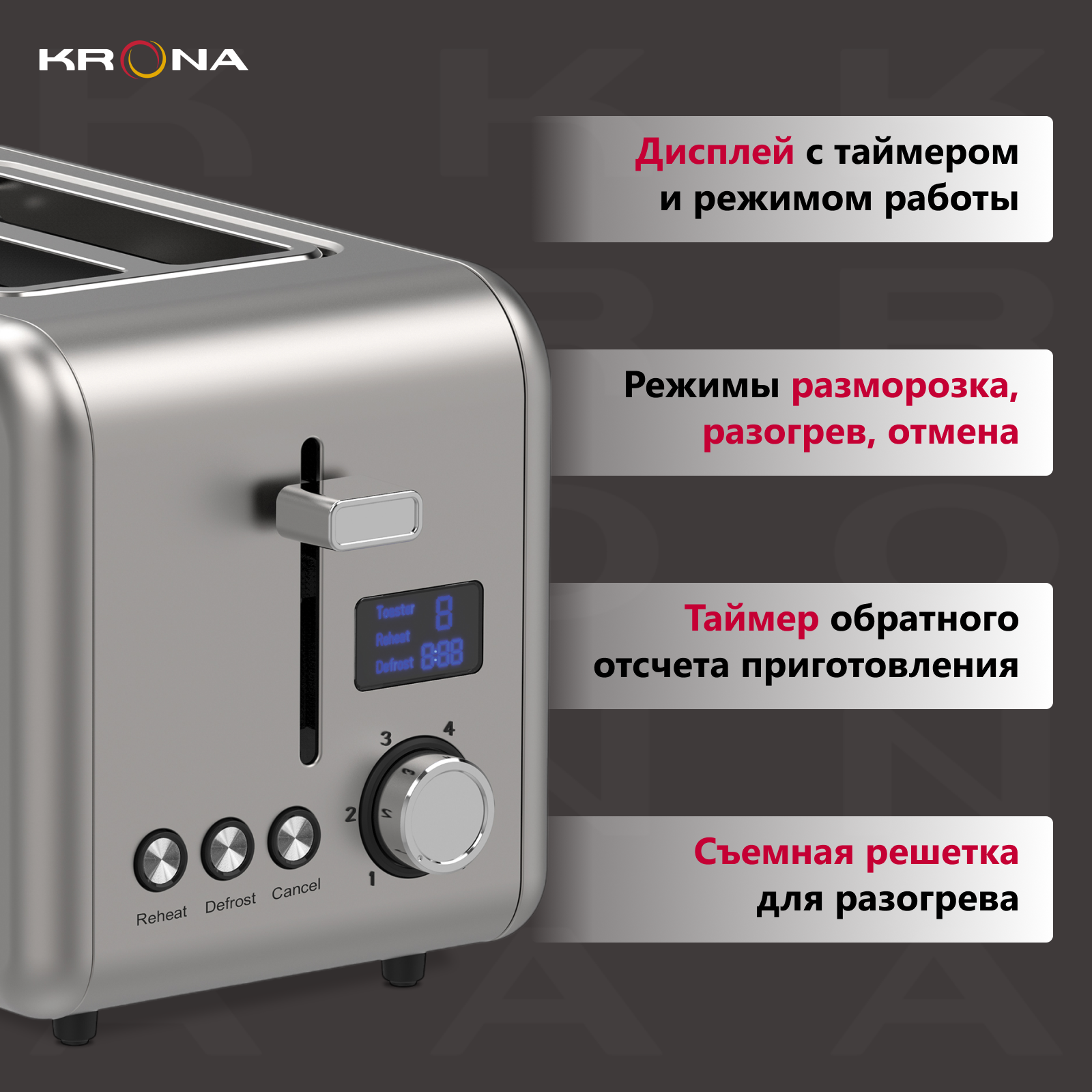 Тостер для хлеба KRONA Digitaler Inox 2 слота интересное: