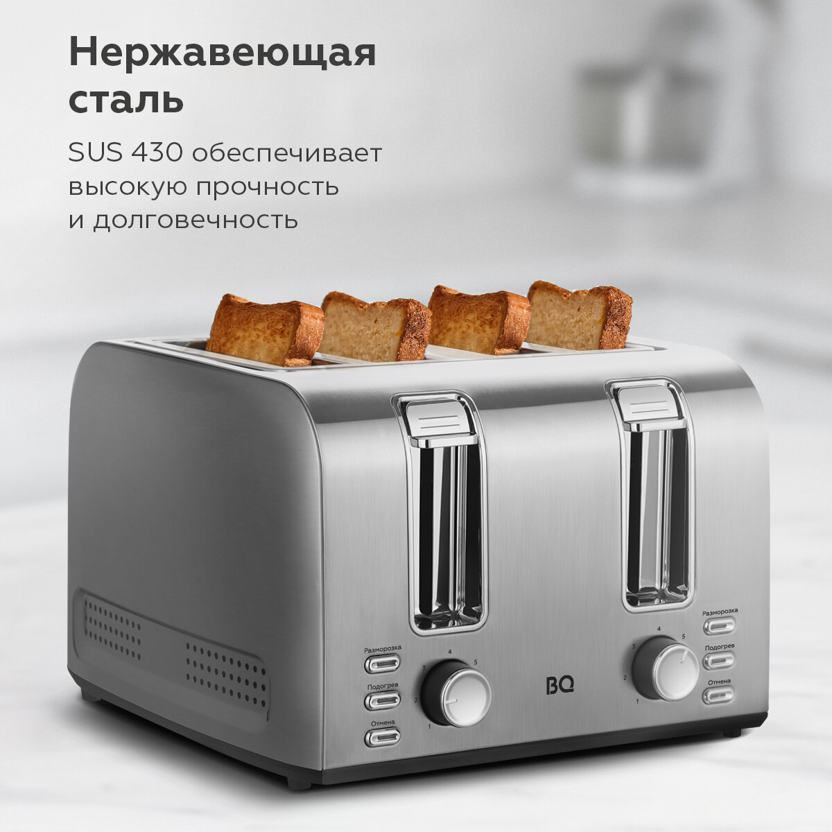 Купить Тостер BQ T2001 Серебристый / Мощность 1500 Вт / 7 режимов / Корпус из нержавеющей стали