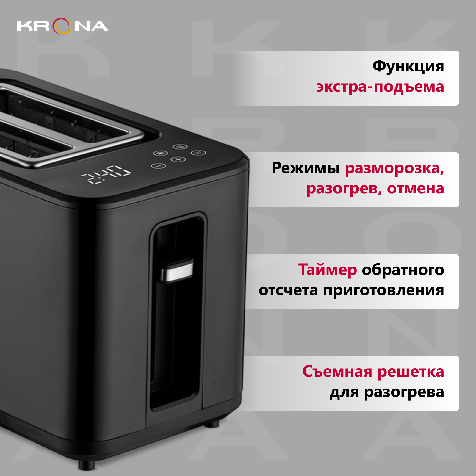 Тостер для хлеба KRONA Digitaler Black электрический 2 слота интересное: