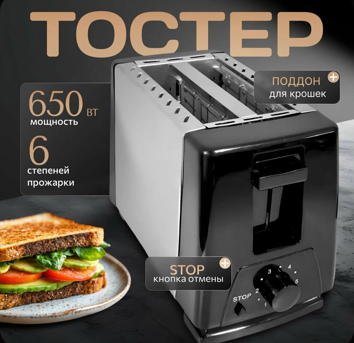 Тостер корпус из нержавеющей стали мощность 650Вт интересное: