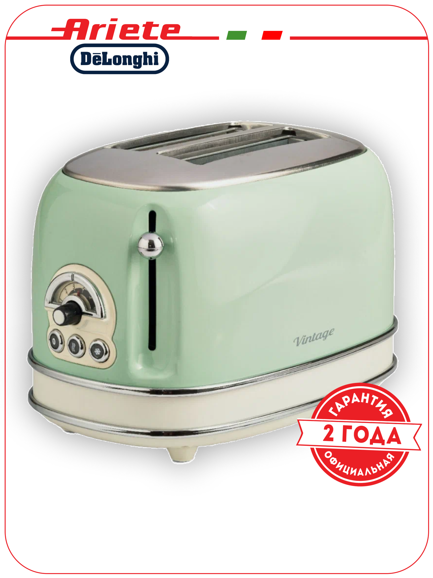 Тостер АRIETE 155 Vintage, на 2 ломтика, 6 уровней поджаривания, нагрев и разморозка, зеленый (00C015514AR0) интересное: