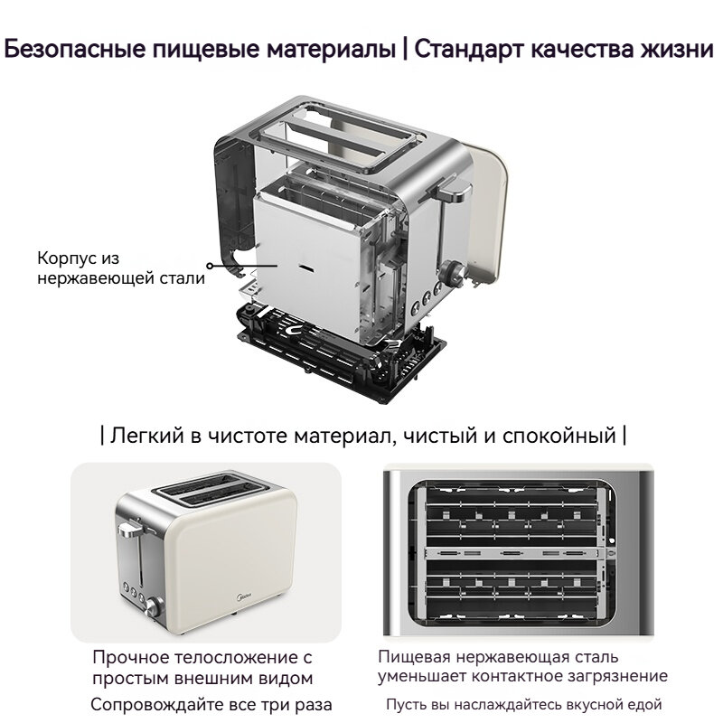 Тостер Midea, серебристый, 800 Вт, 2 тоста, механический, регулировка степени обжаривания интересное: