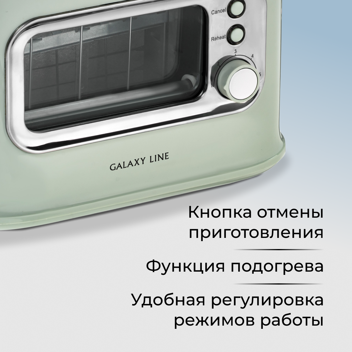 Купить Тостер Galaxy Line GL2914, 5 режимов, зеленый, 900Вт